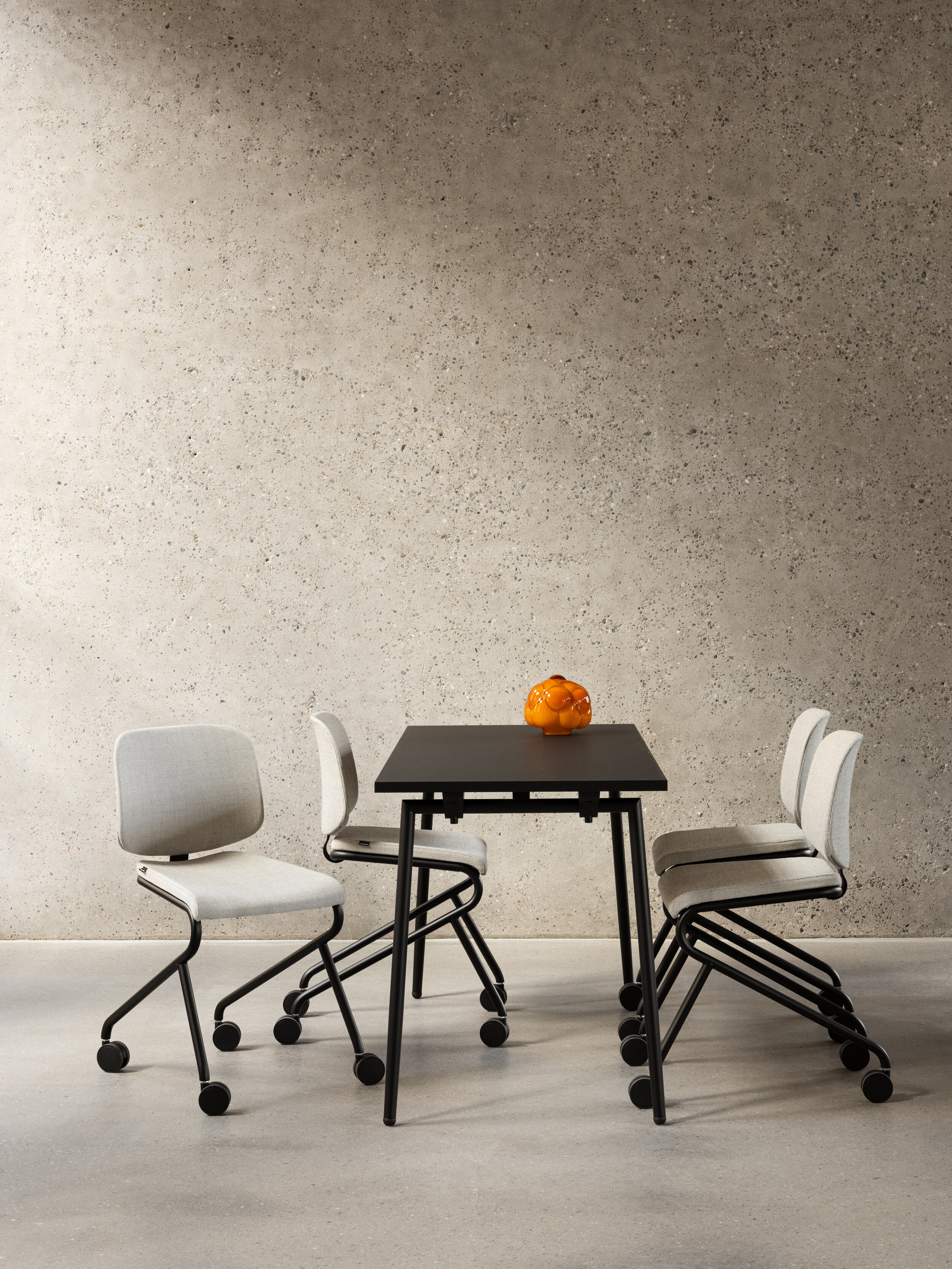 ADD Move is a neater variation on the office chair. This chair, which has a four-legged base on castors, is equally well suited to the workplace or meeting environments. Add Move gives a new look to dynamic work environments as a flexible, multifunctional and compact office chair. The strong graphic look takes its cue from the style of the original product, ‘ADD stool’.”