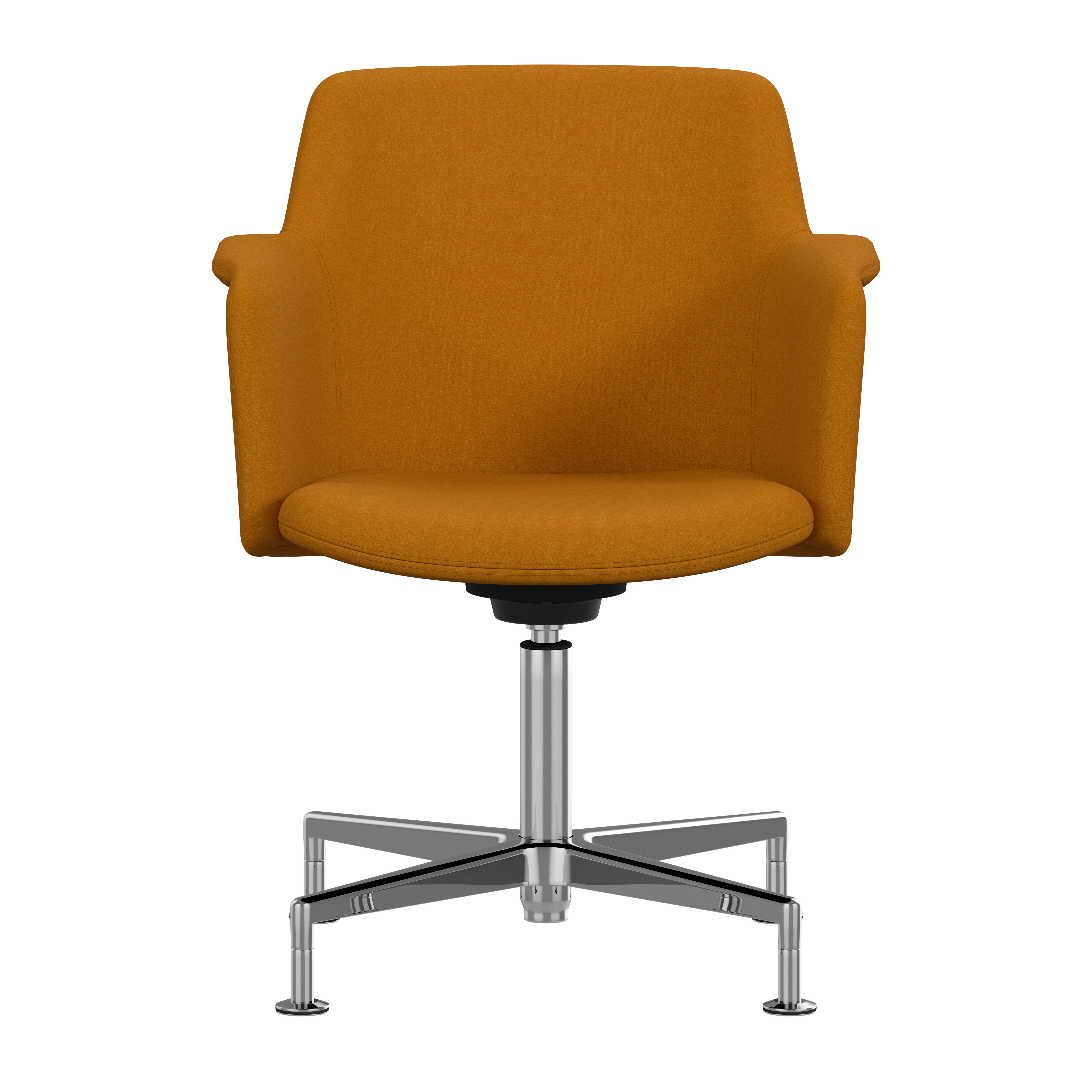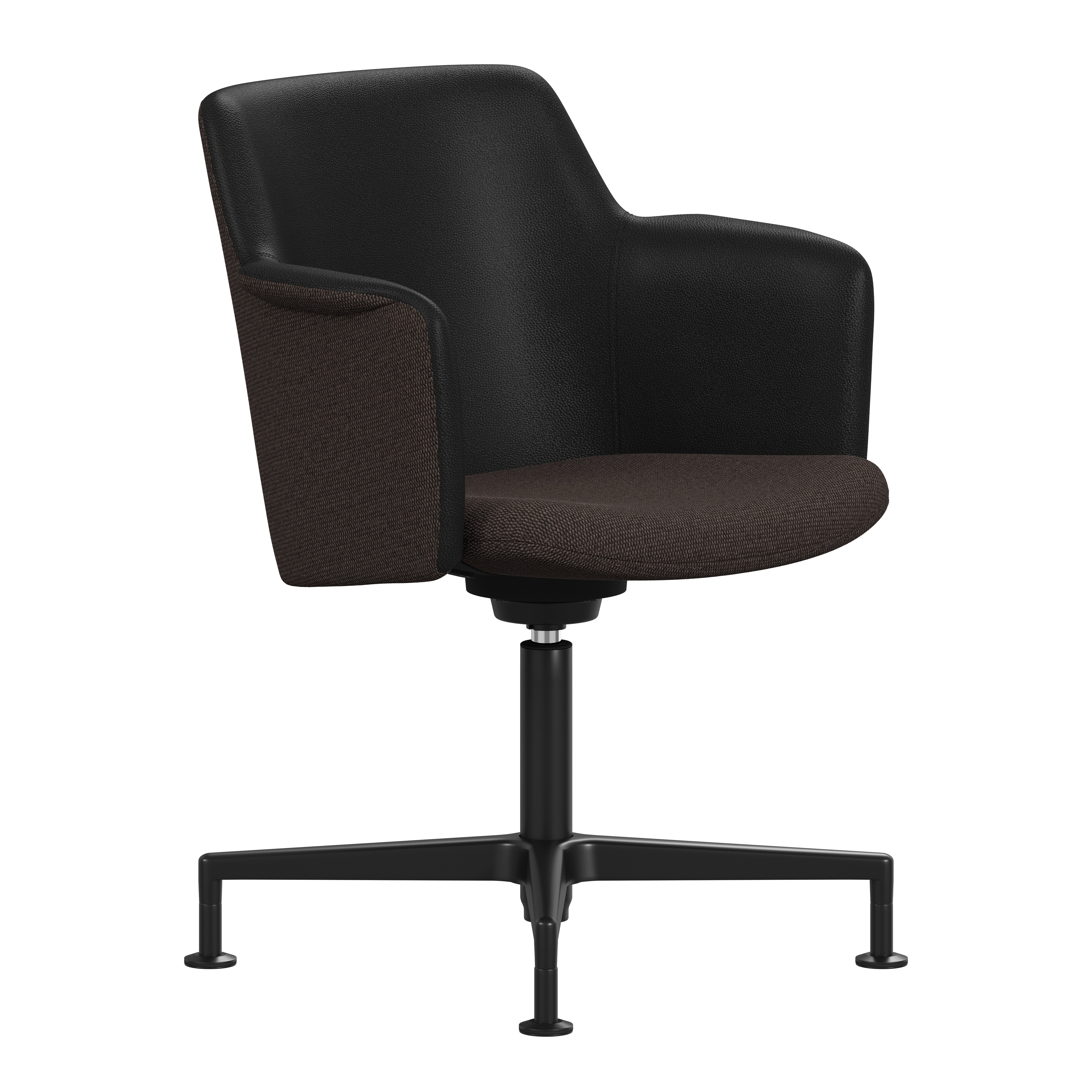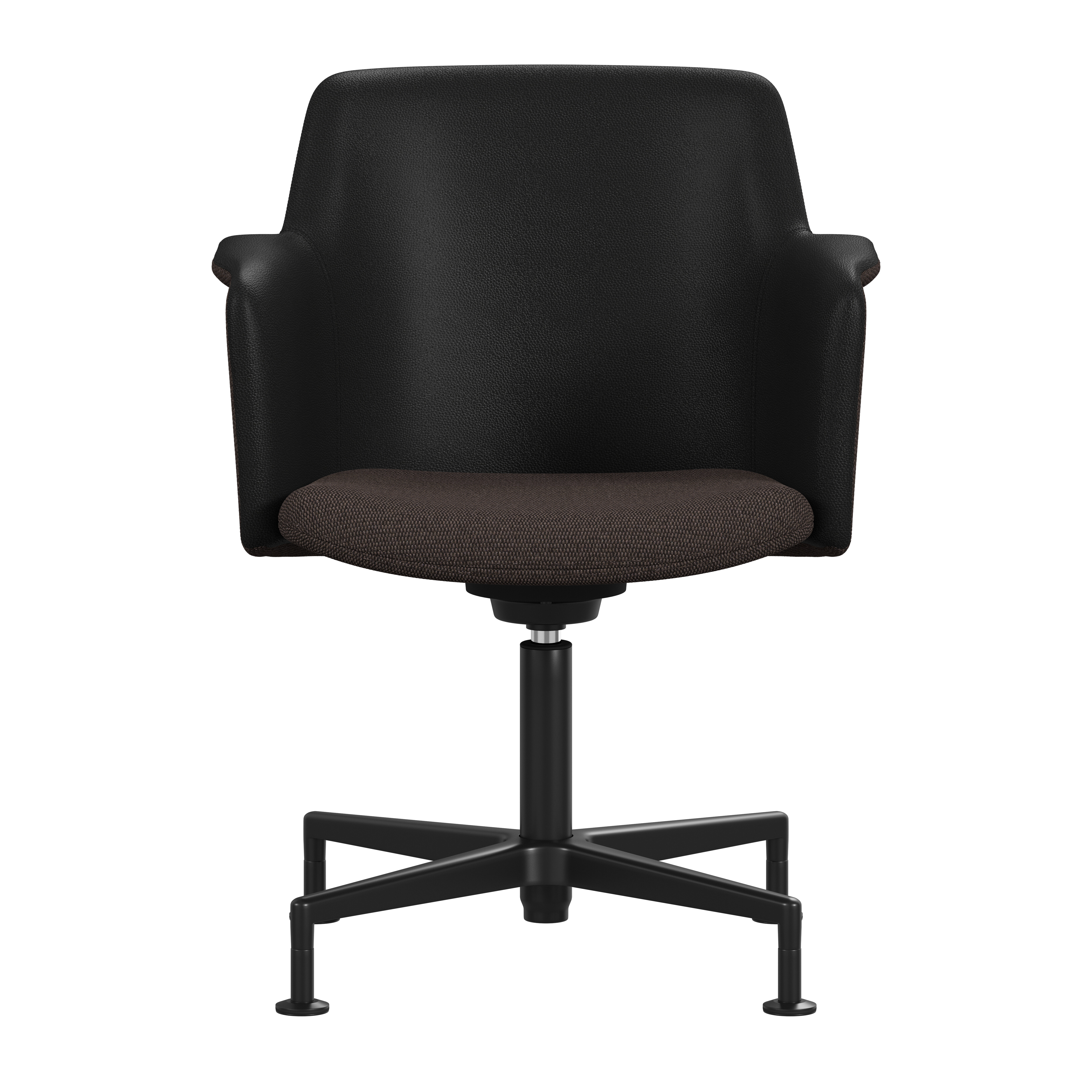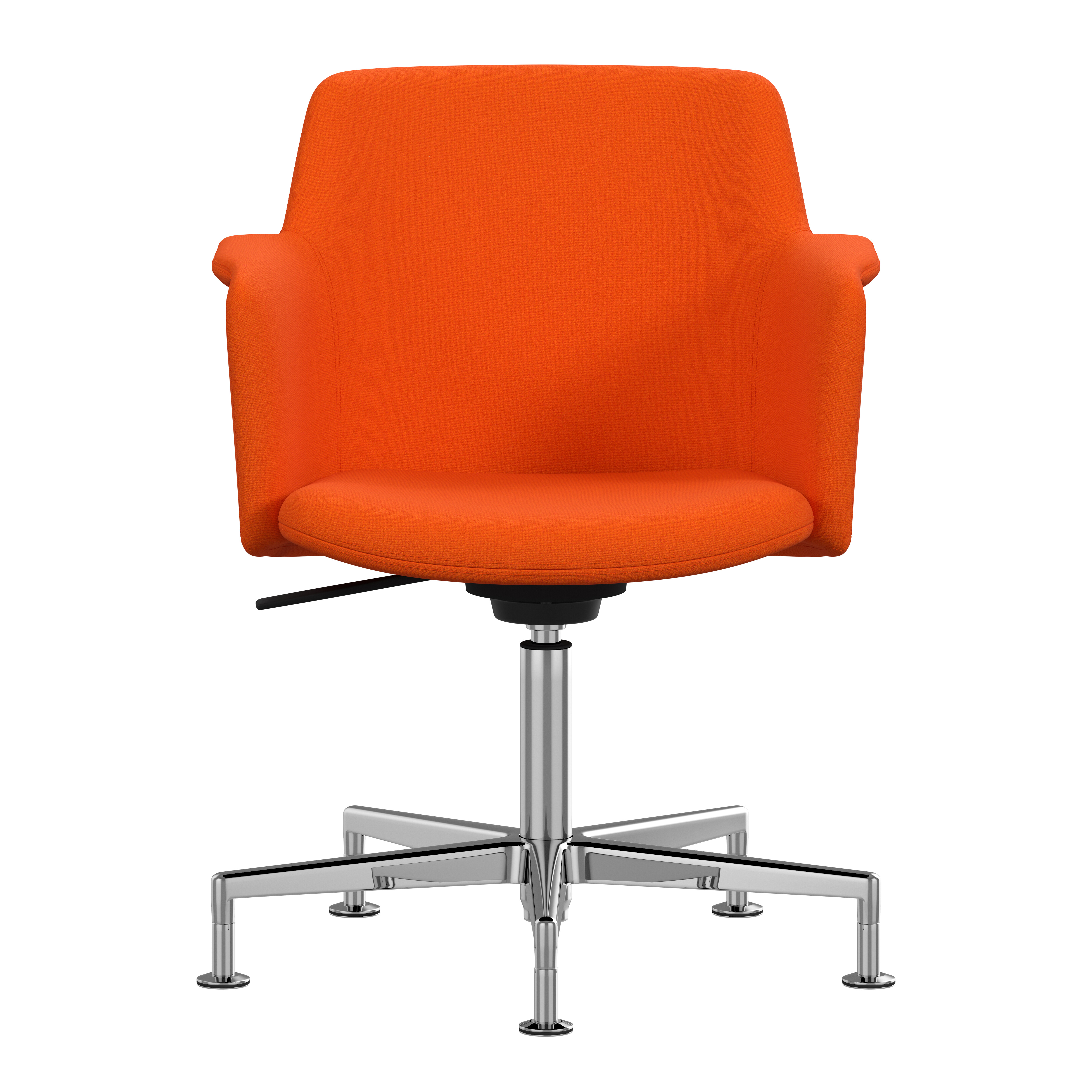 Carousel conference chair, designed by Gunilla Allard, provides maximum comfort in a reduced format. The fully upholstered shell chair is equipped with a 360° comfort tilt which gives the seat shell a multi-directional movement. This feature creates a very gentle and flexible motion for the user. The wing-shaped armrest gives character and adds comfort to the soft enclosing seat shell.