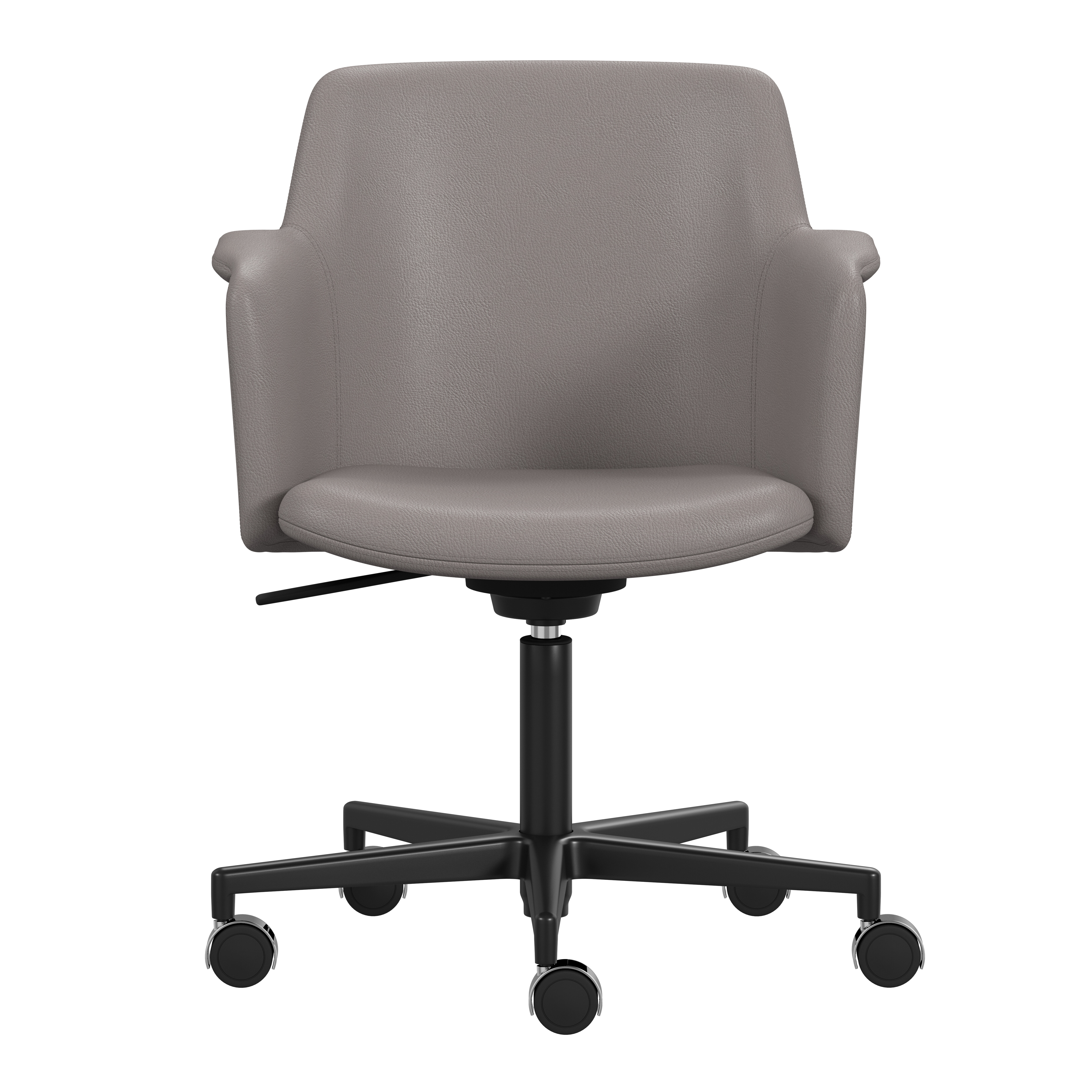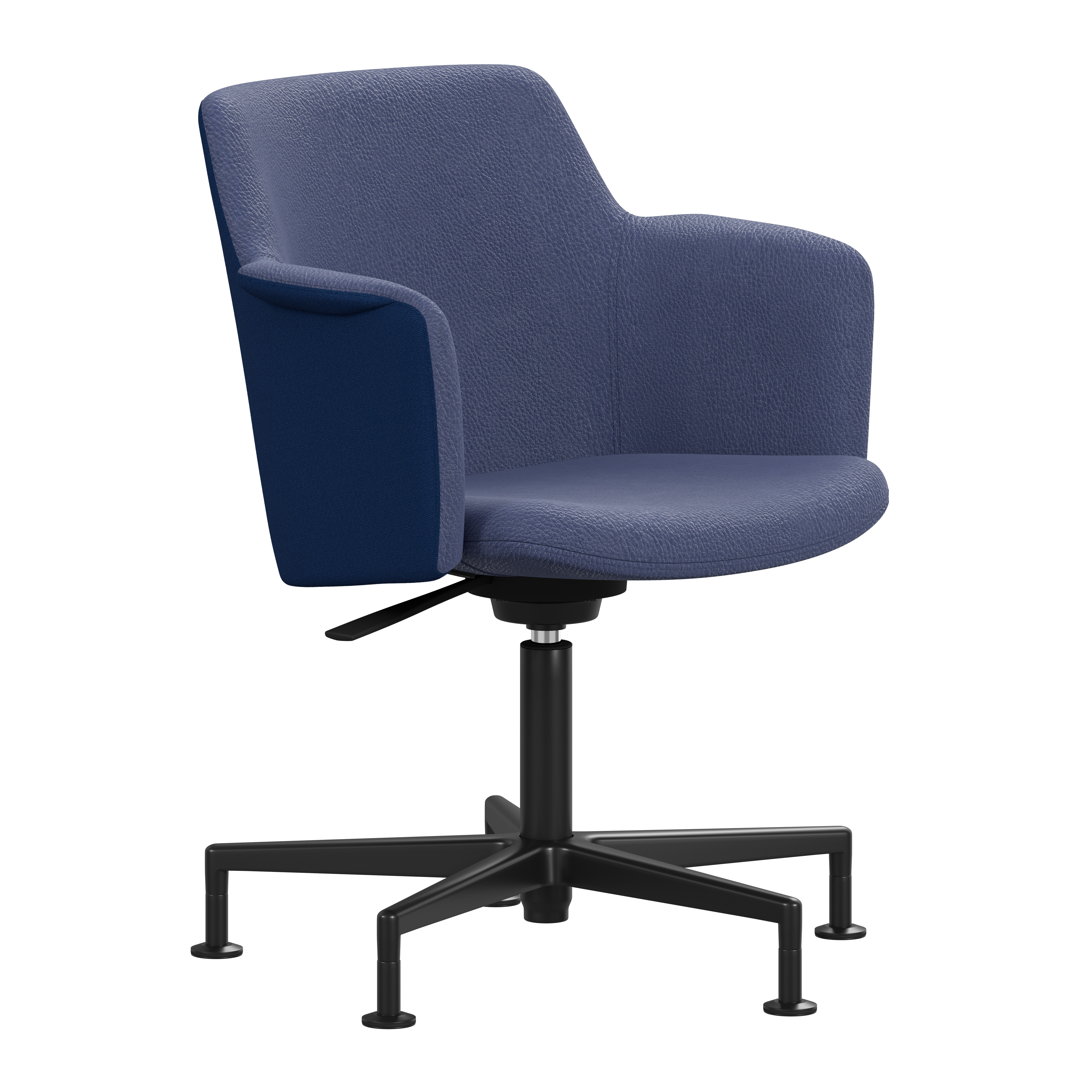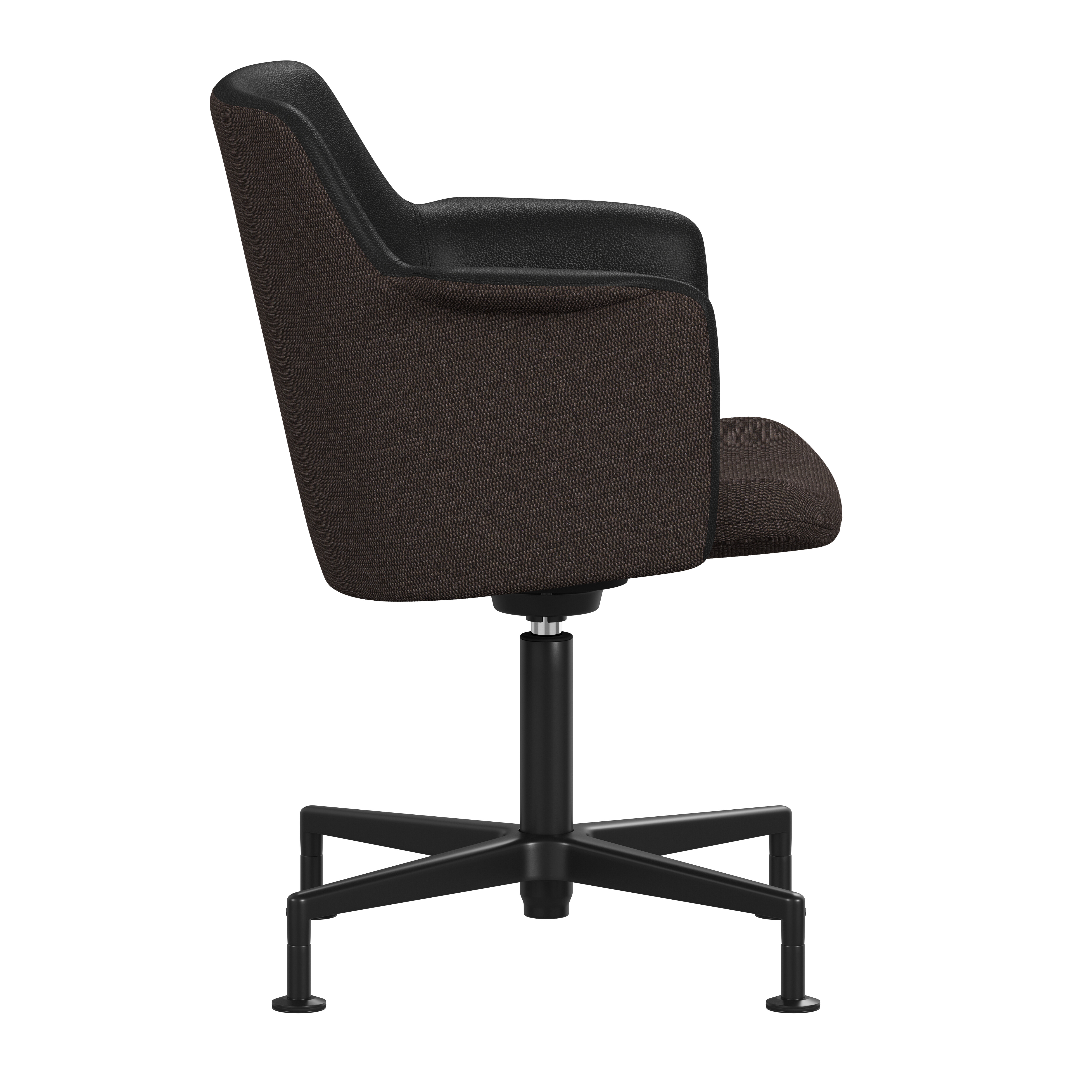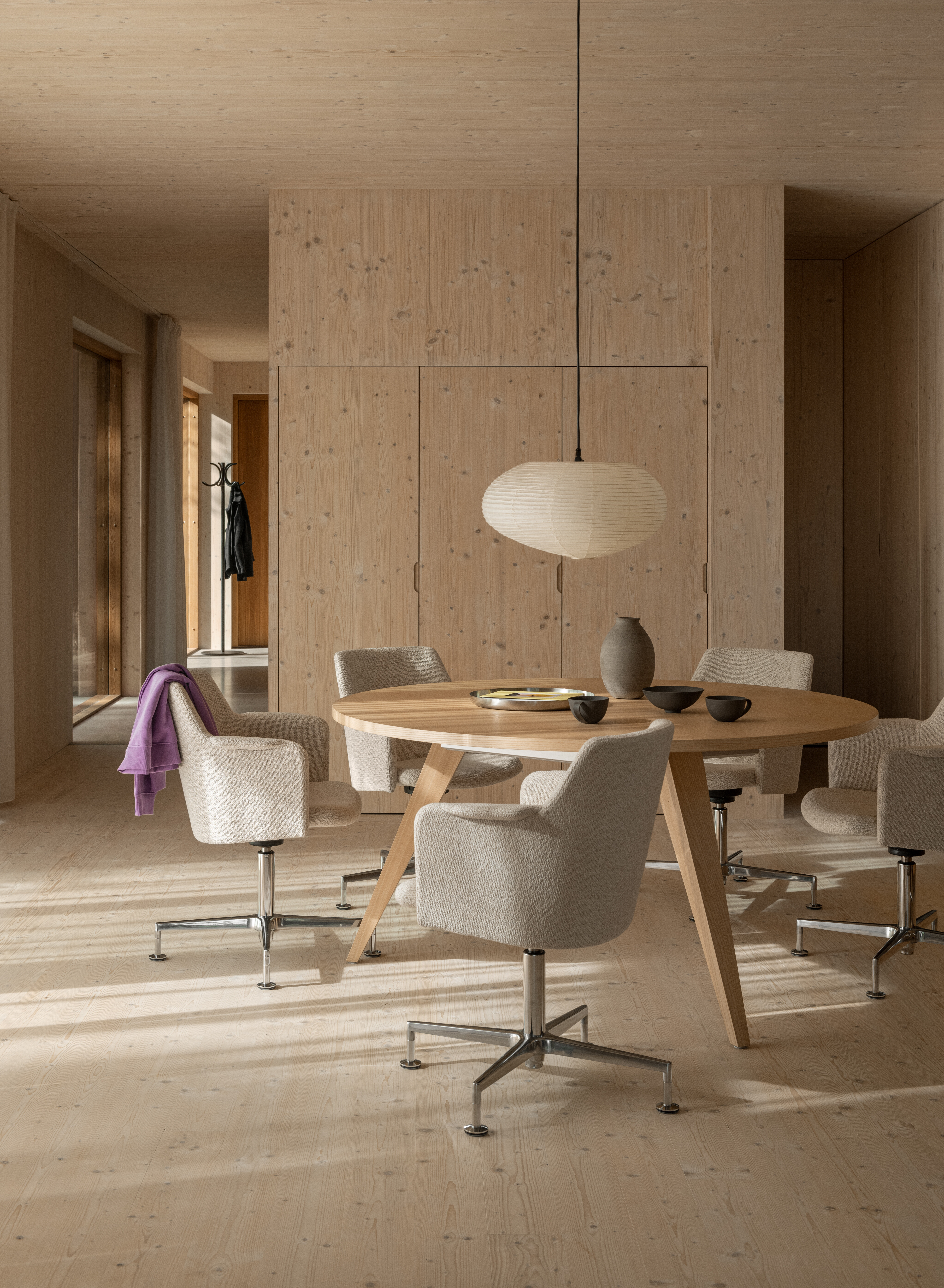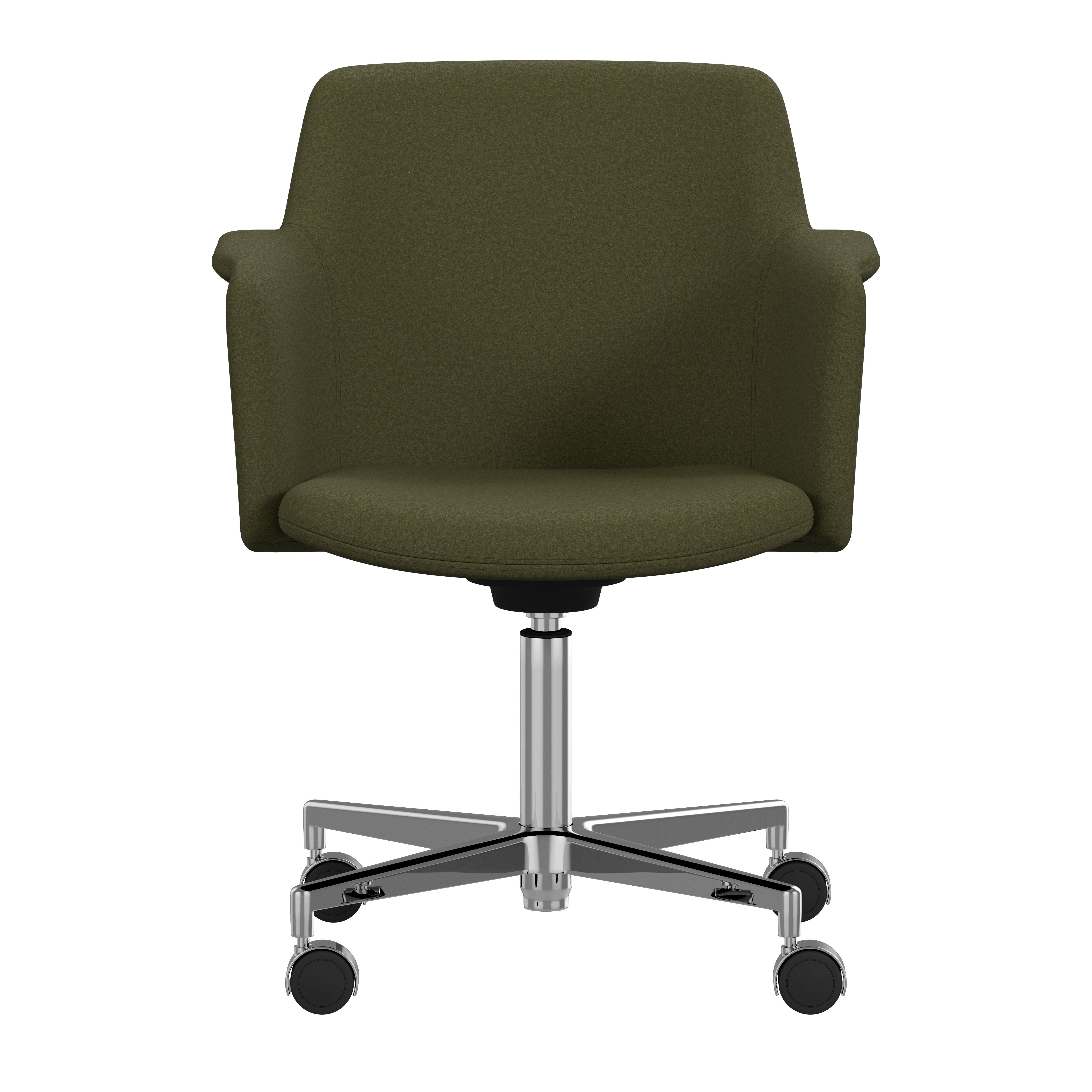 Carousel conference chair, designed by Gunilla Allard, provides maximum comfort in a reduced format. The fully upholstered shell chair is equipped with a 360° comfort tilt which gives the seat shell a multi-directional movement. This feature creates a very gentle and flexible motion for the user. The wing-shaped armrest gives character and adds comfort to the soft enclosing seat shell.