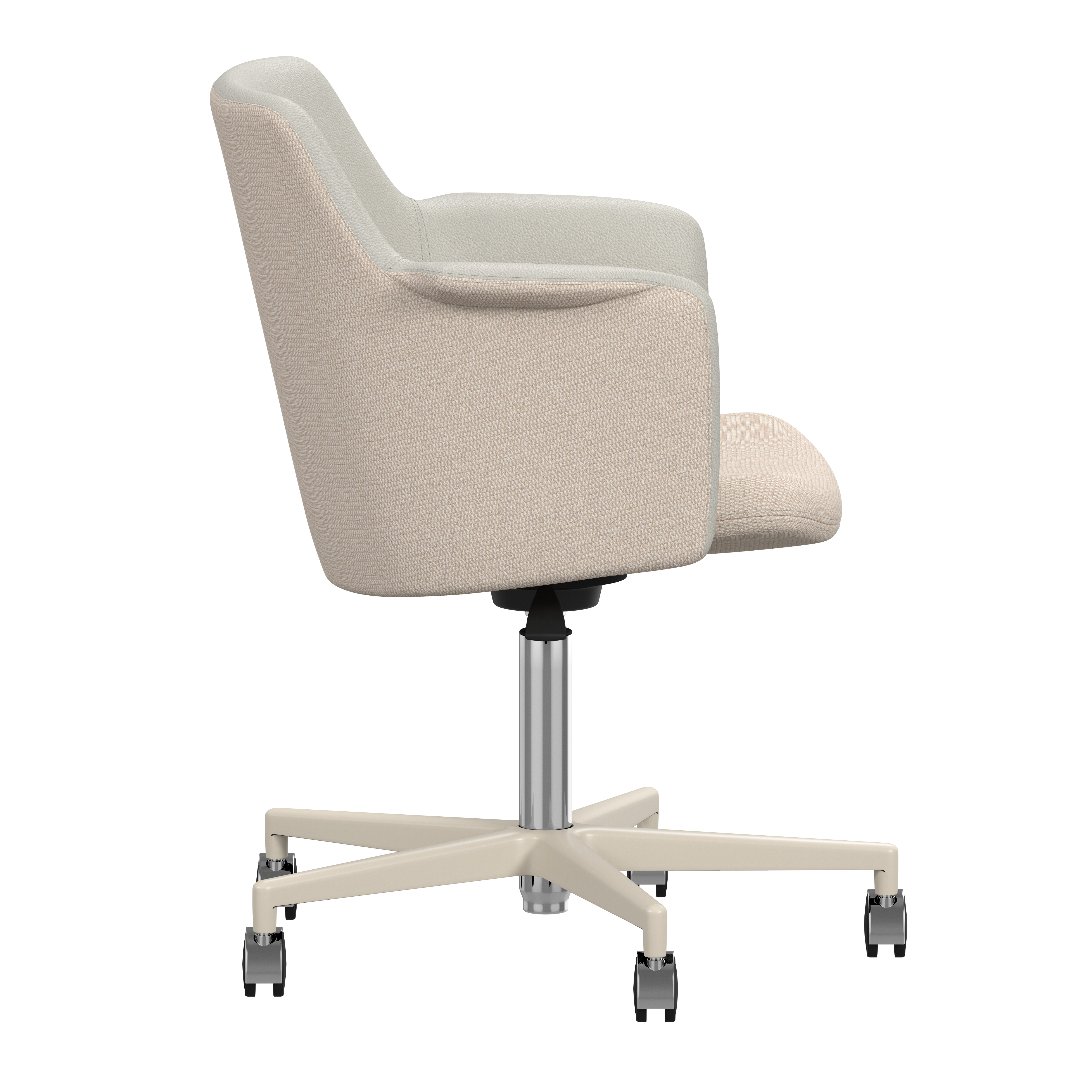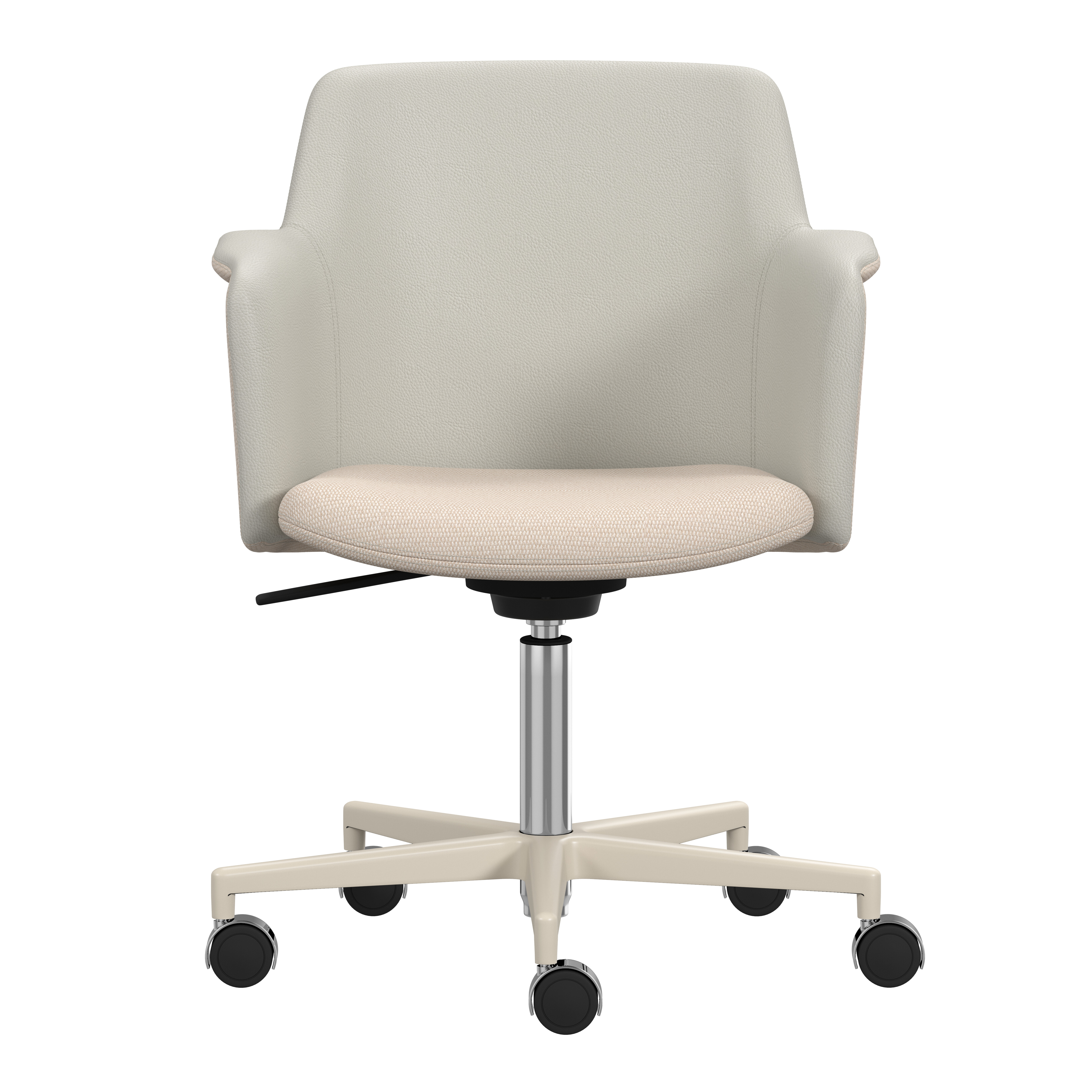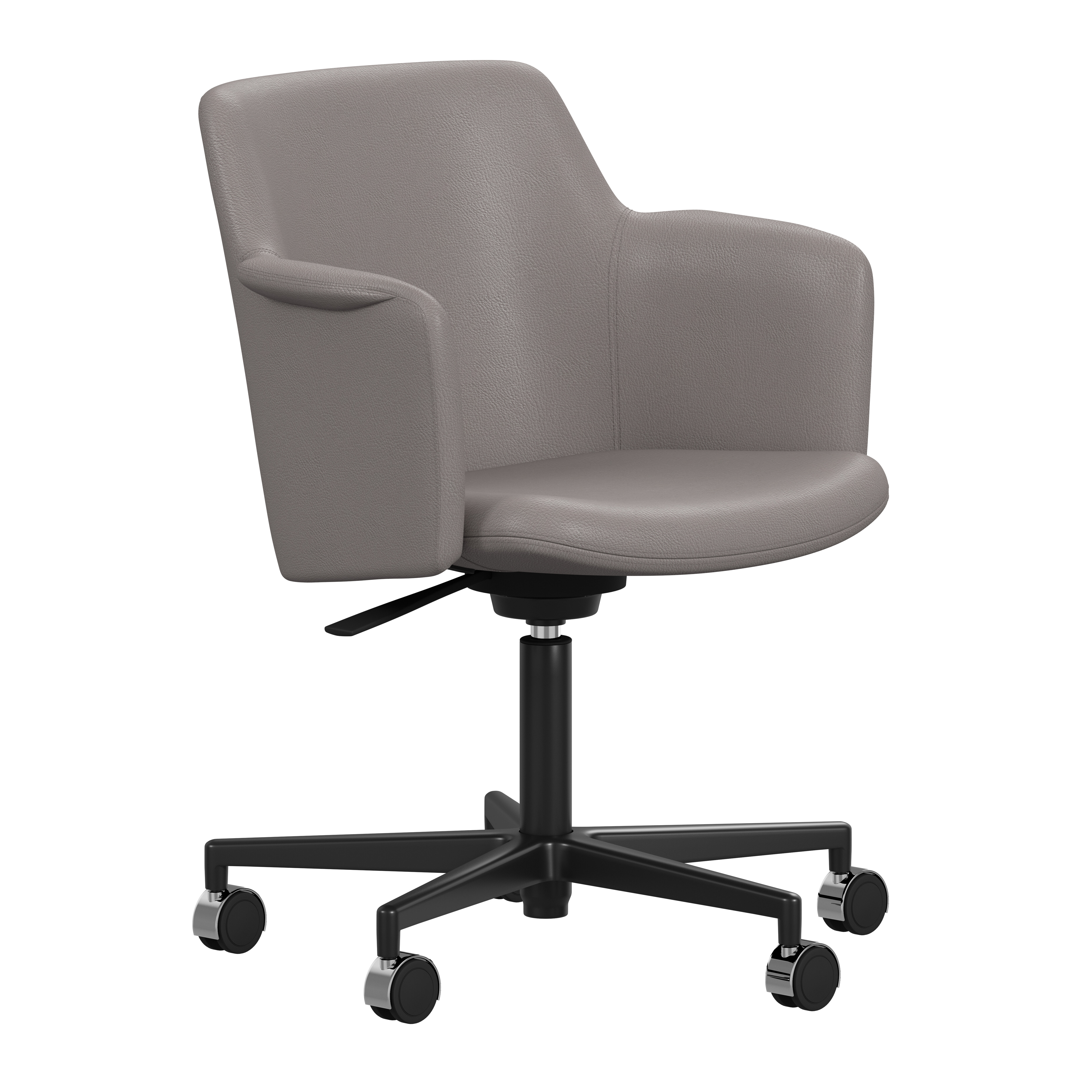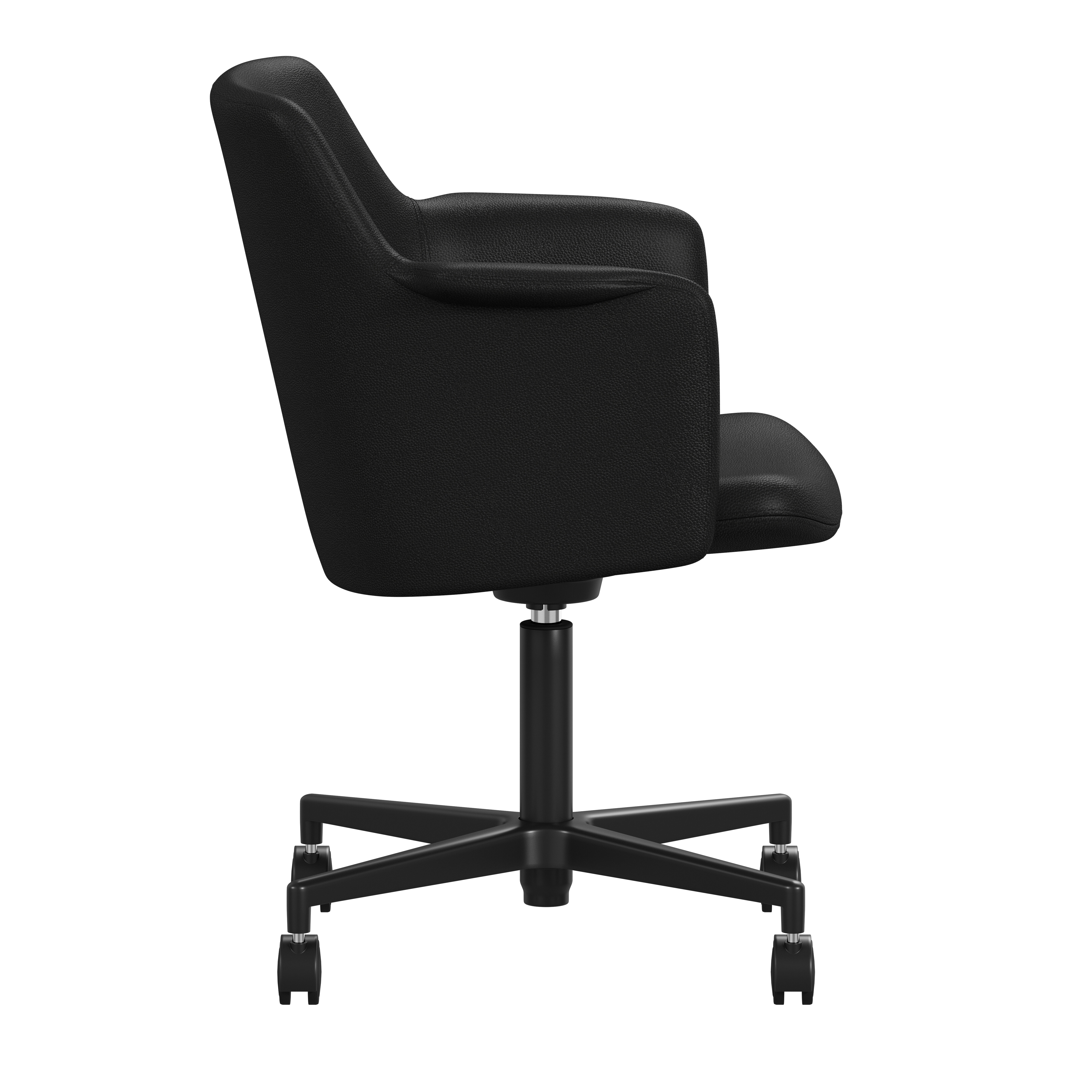 Carousel conference chair, designed by Gunilla Allard, provides maximum comfort in a reduced format. The fully upholstered shell chair is equipped with a 360° comfort tilt which gives the seat shell a multi-directional movement. This feature creates a very gentle and flexible motion for the user. The wing-shaped armrest gives character and adds comfort to the soft enclosing seat shell.