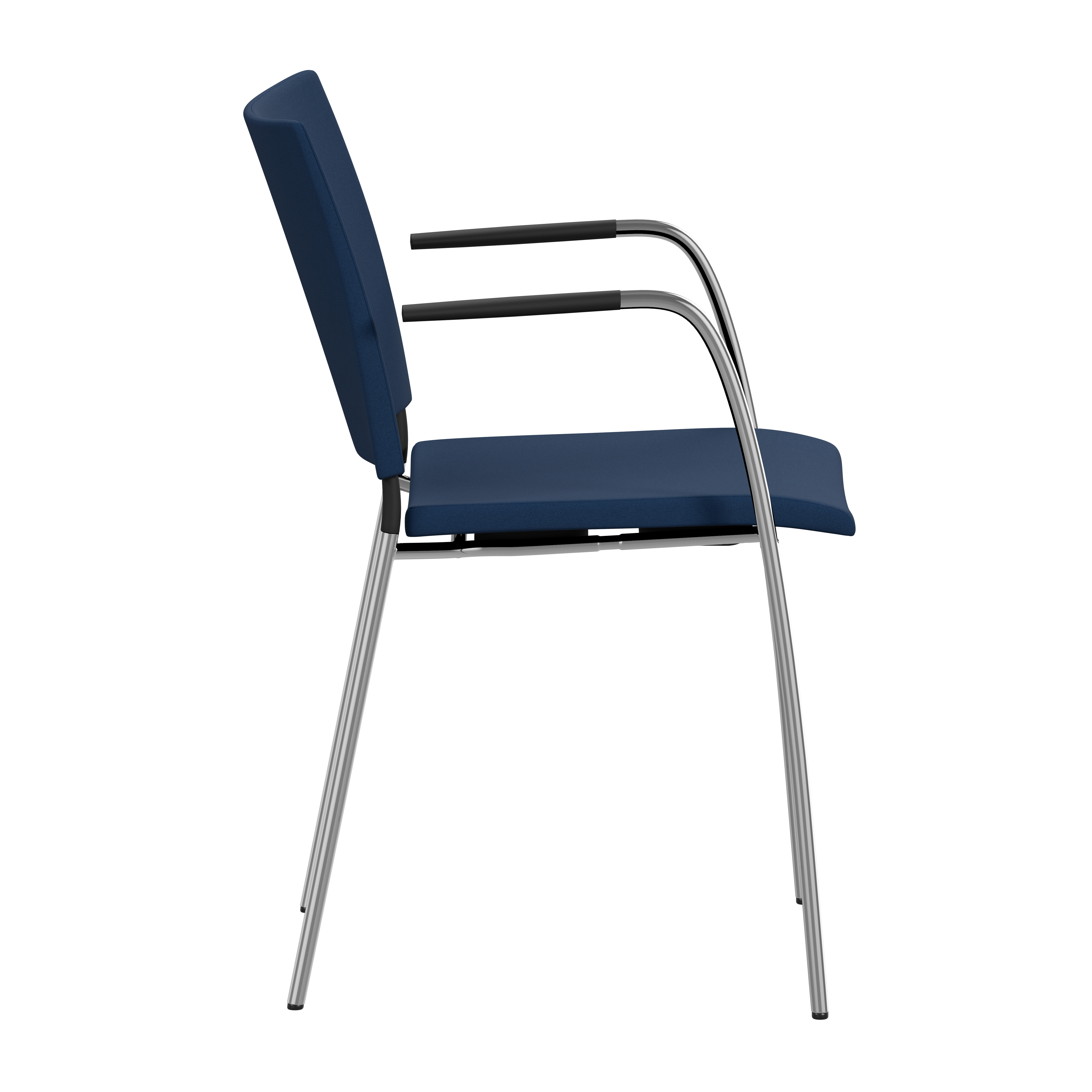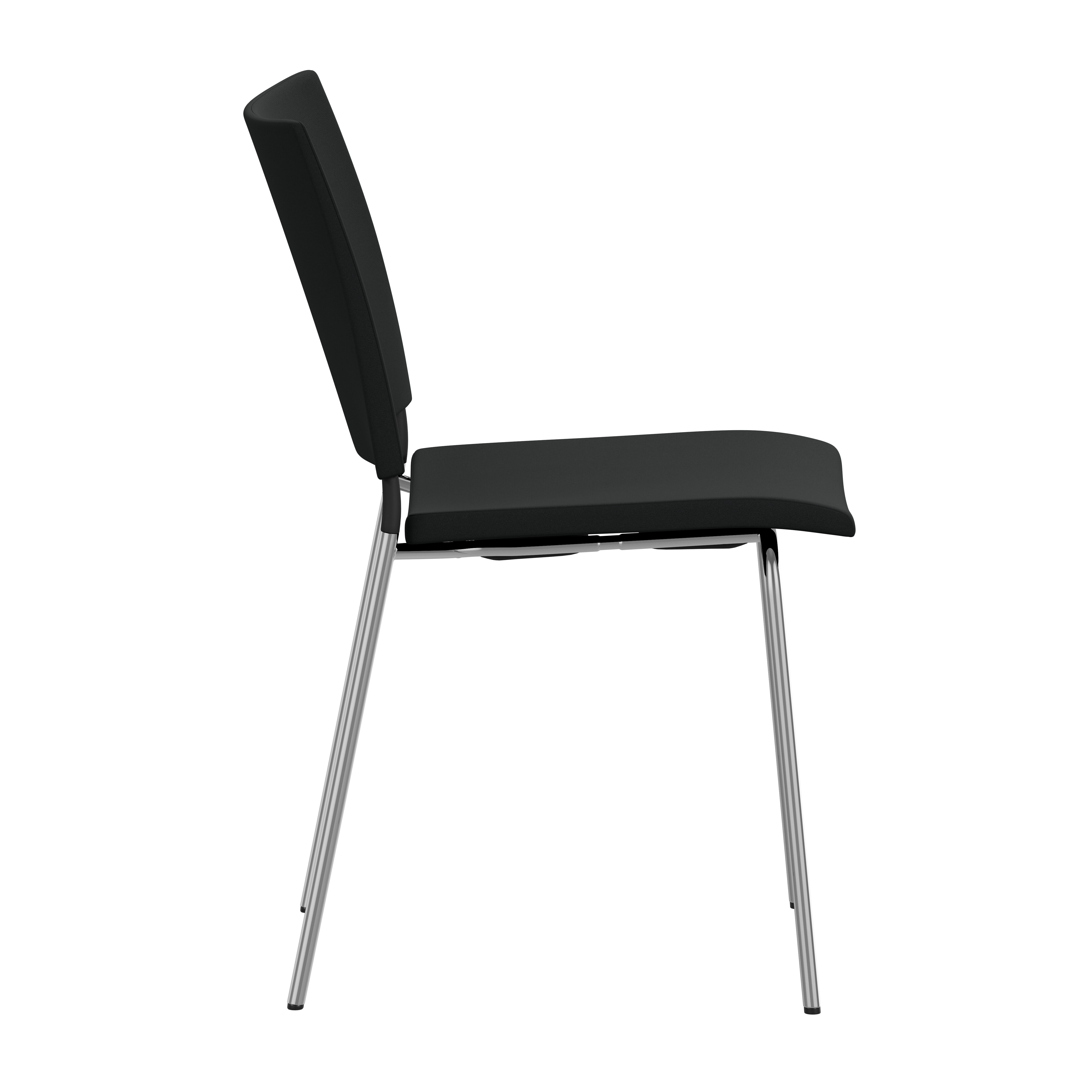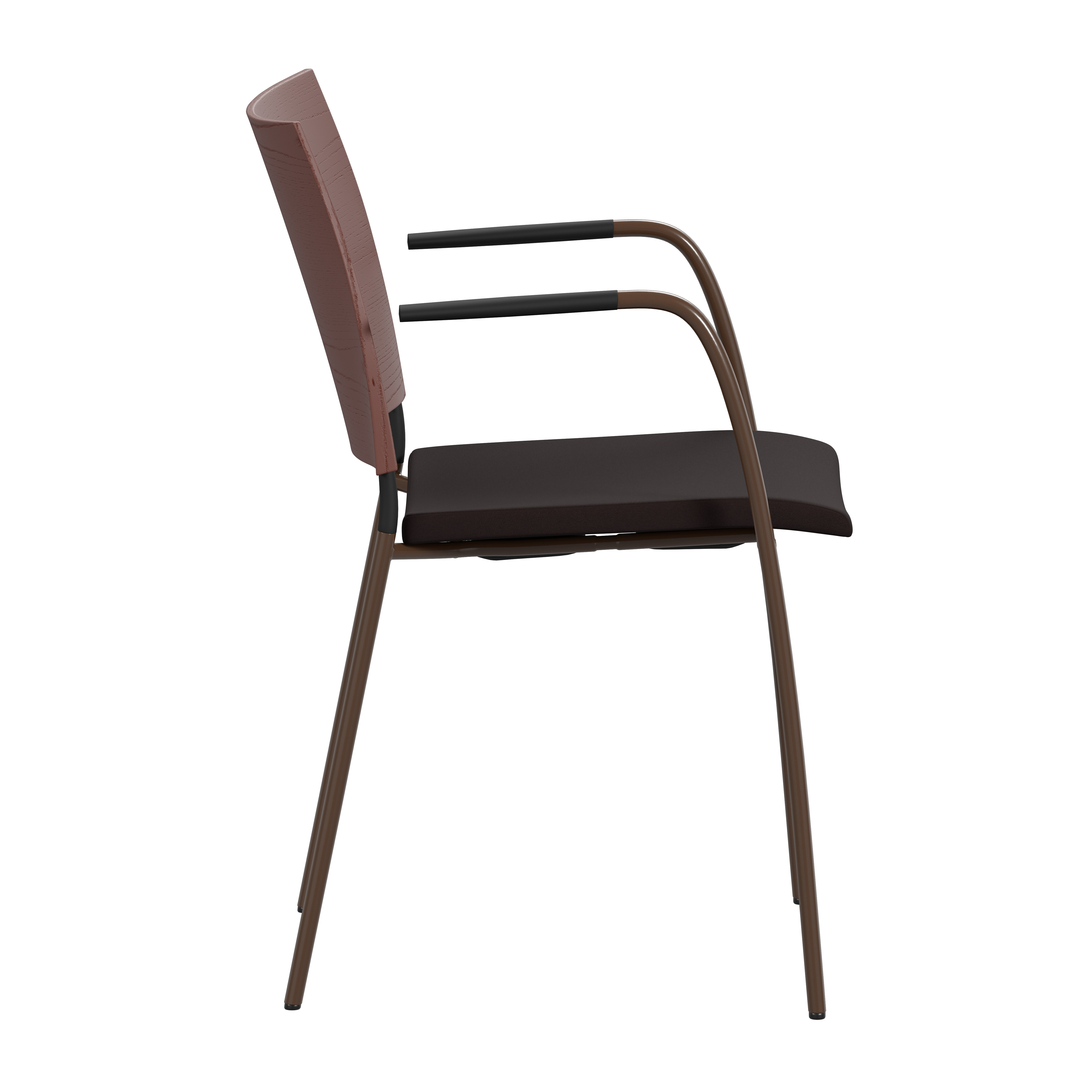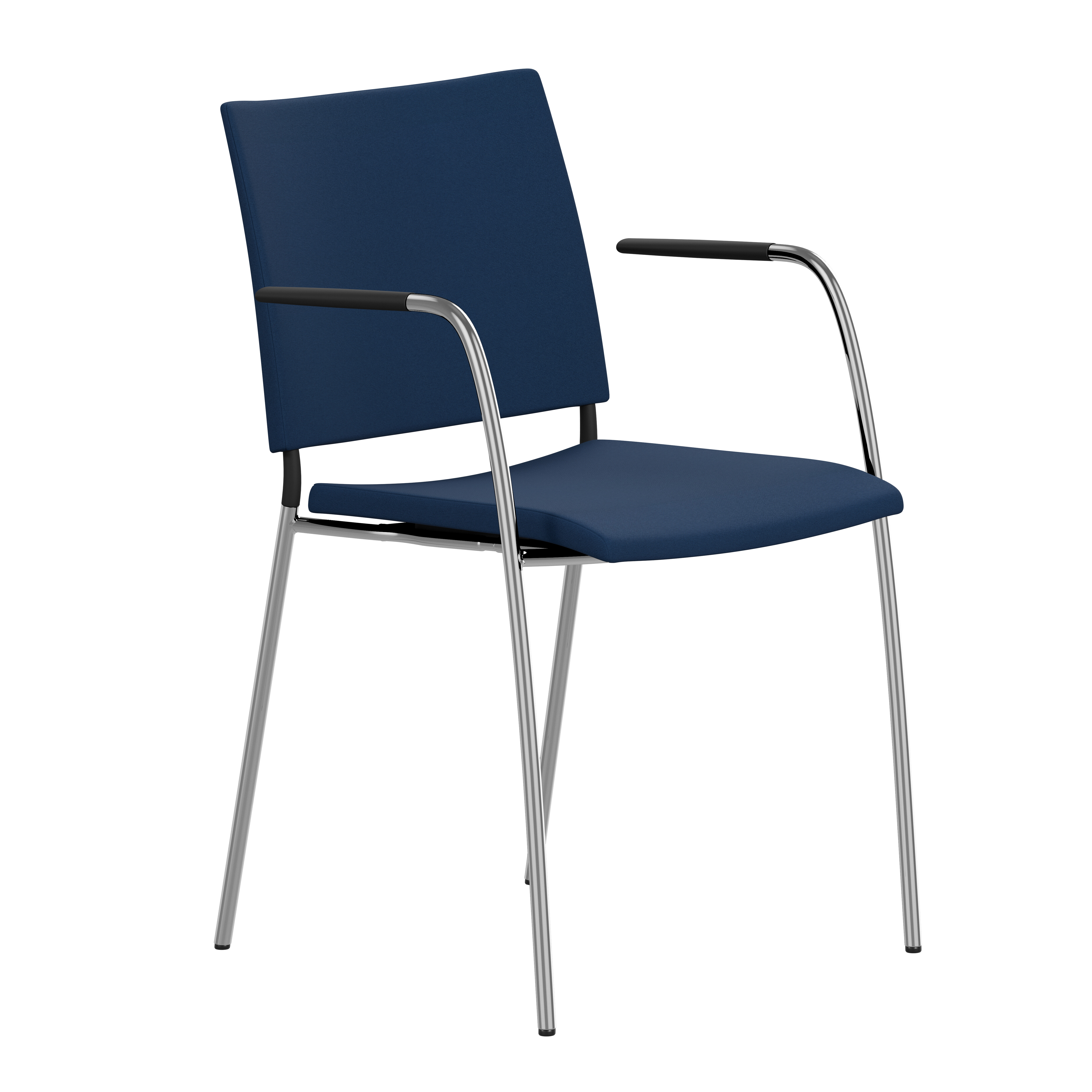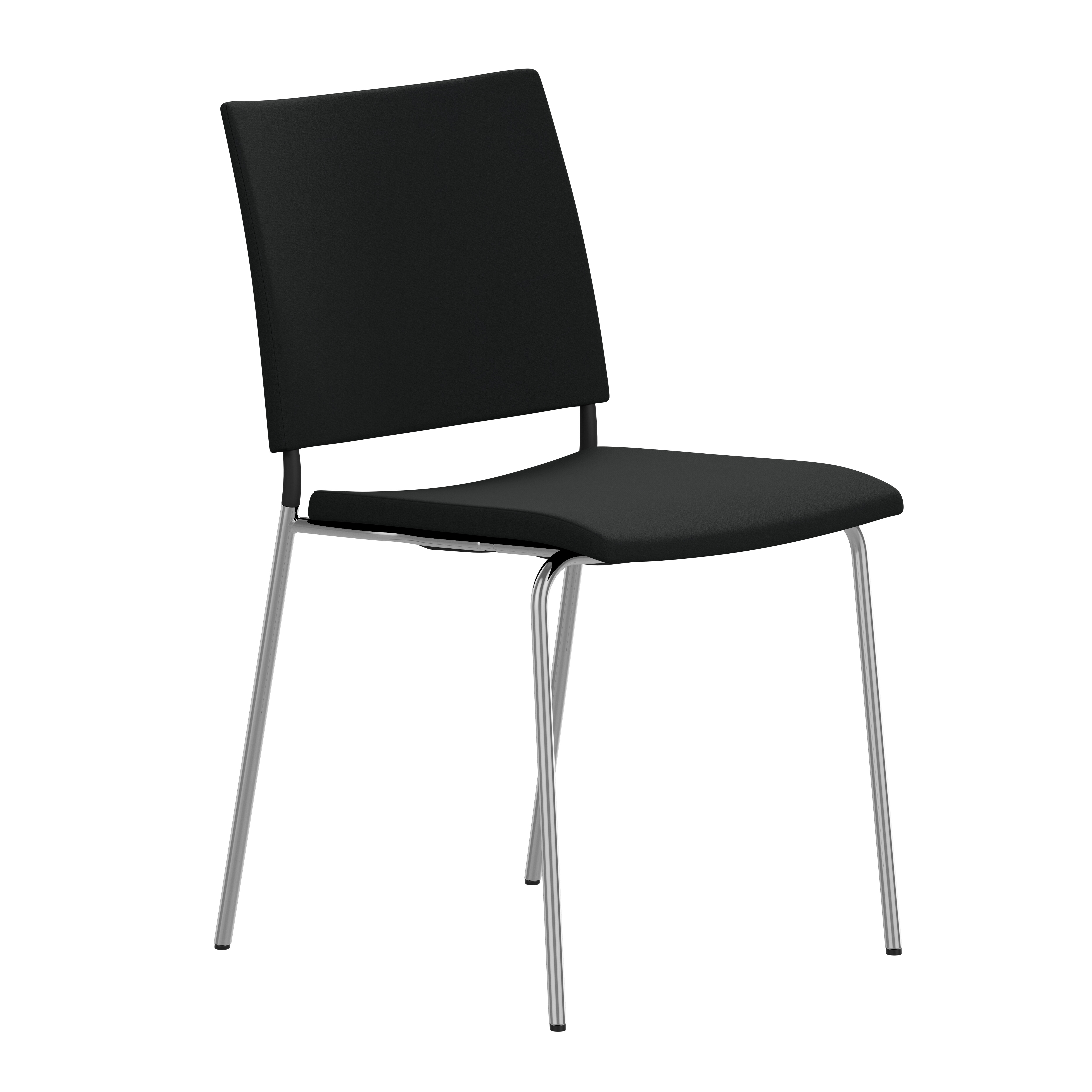 Upholstered seat with high resilient polyurethane foam incl. stacking protection or seat of cast polyurethane with upholstered back or black polyurethane on request. Spring steel in back. Armrests in dark or light woodfibre. Note! Armrest contains 40% woodfibre, therefore look may vary.