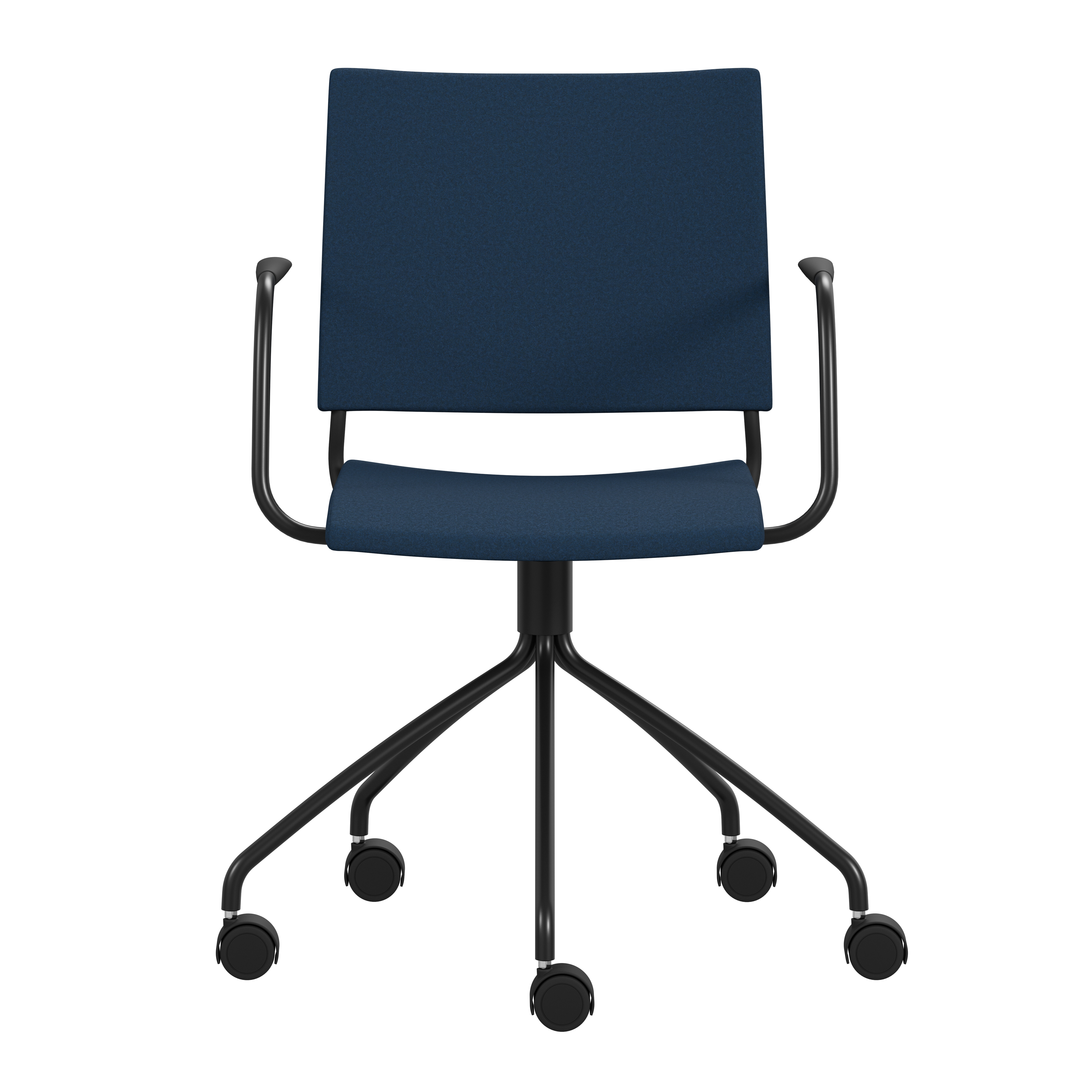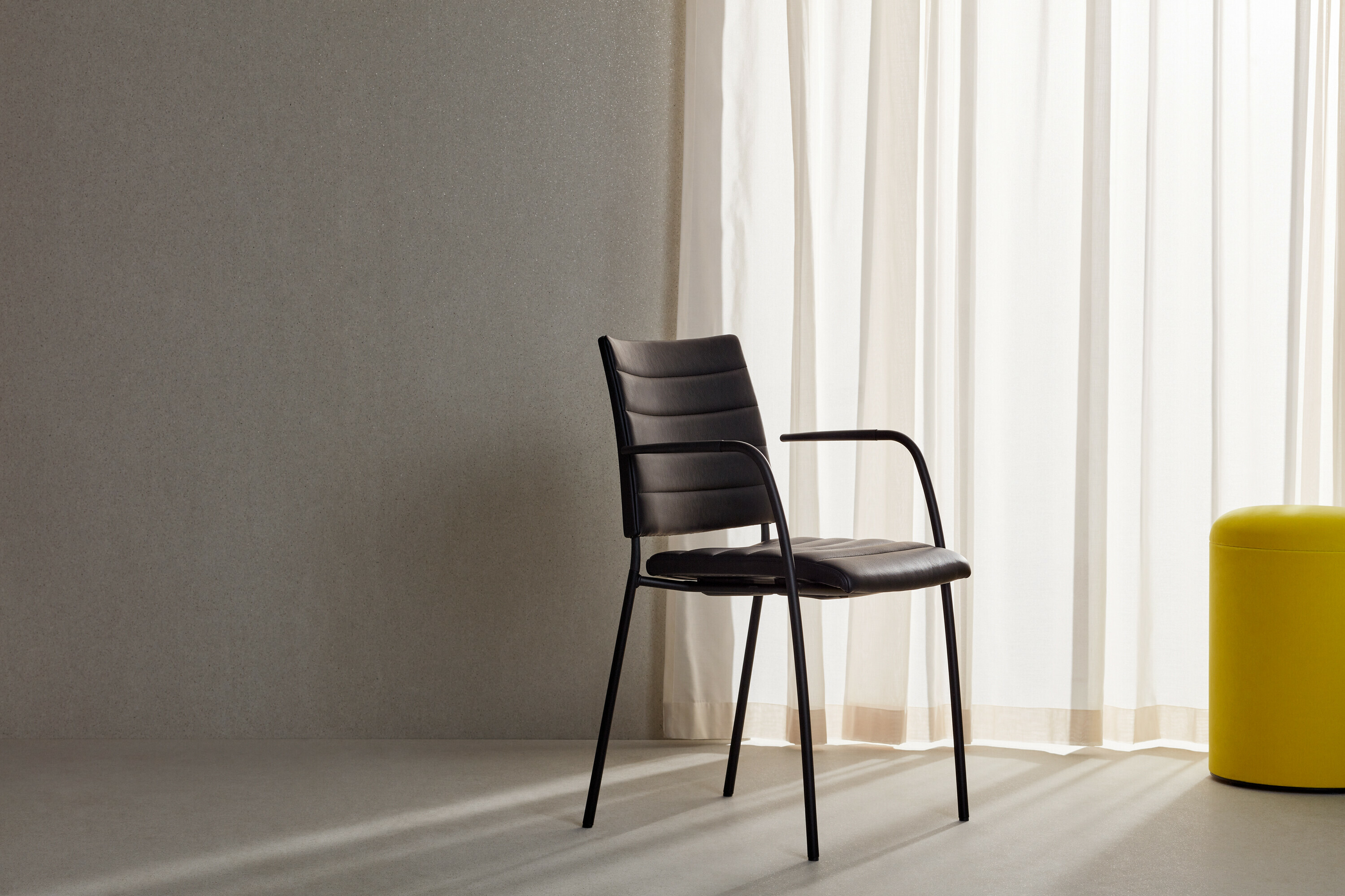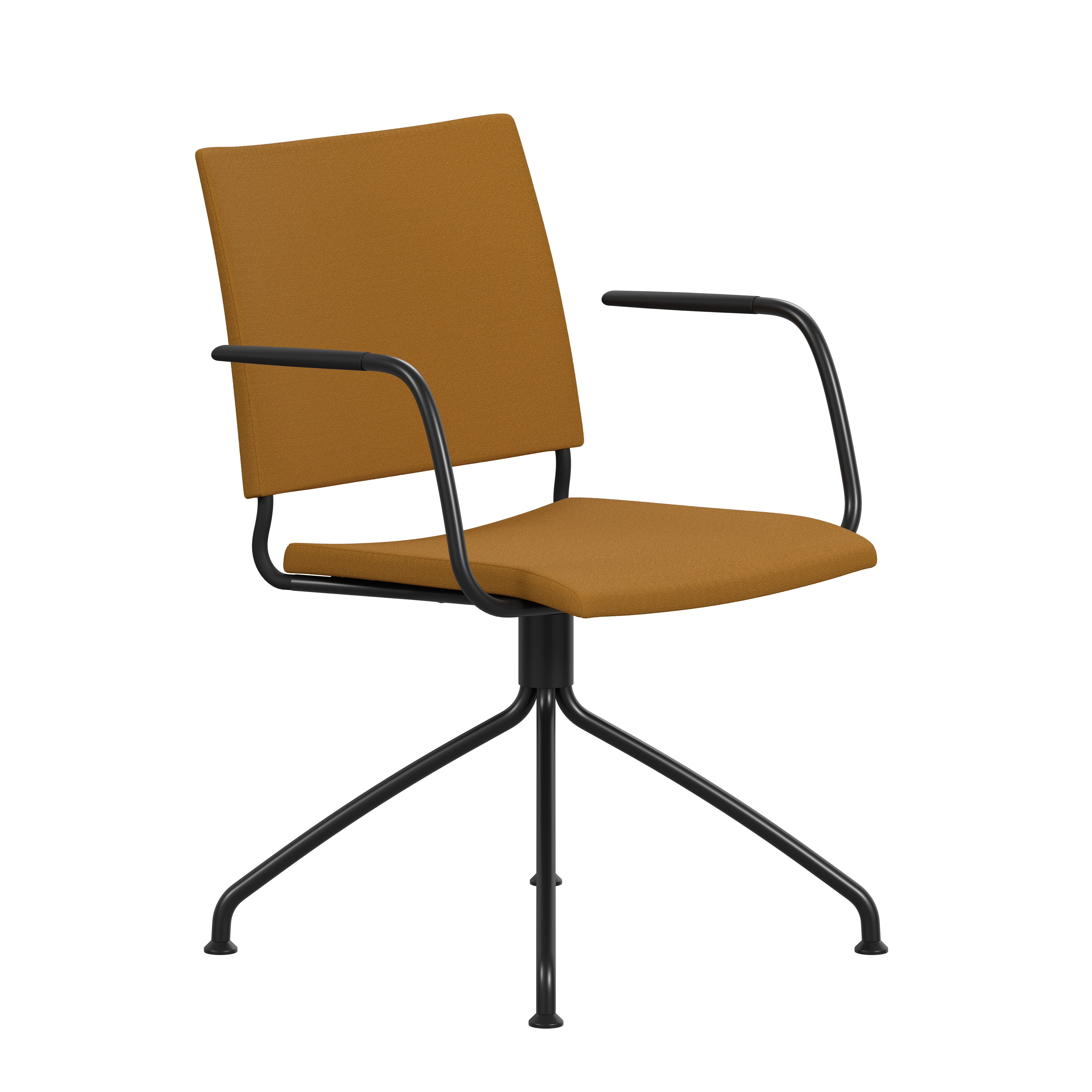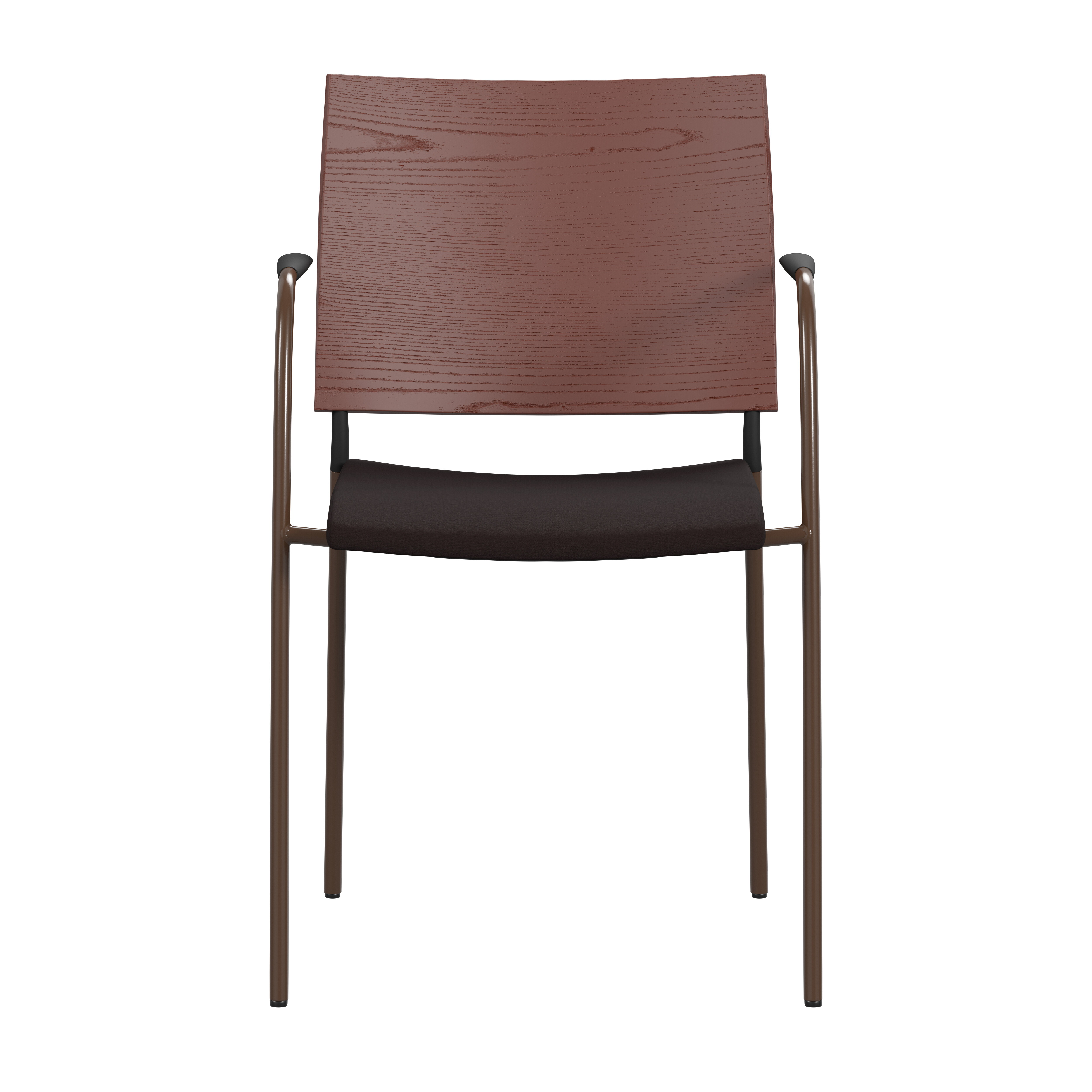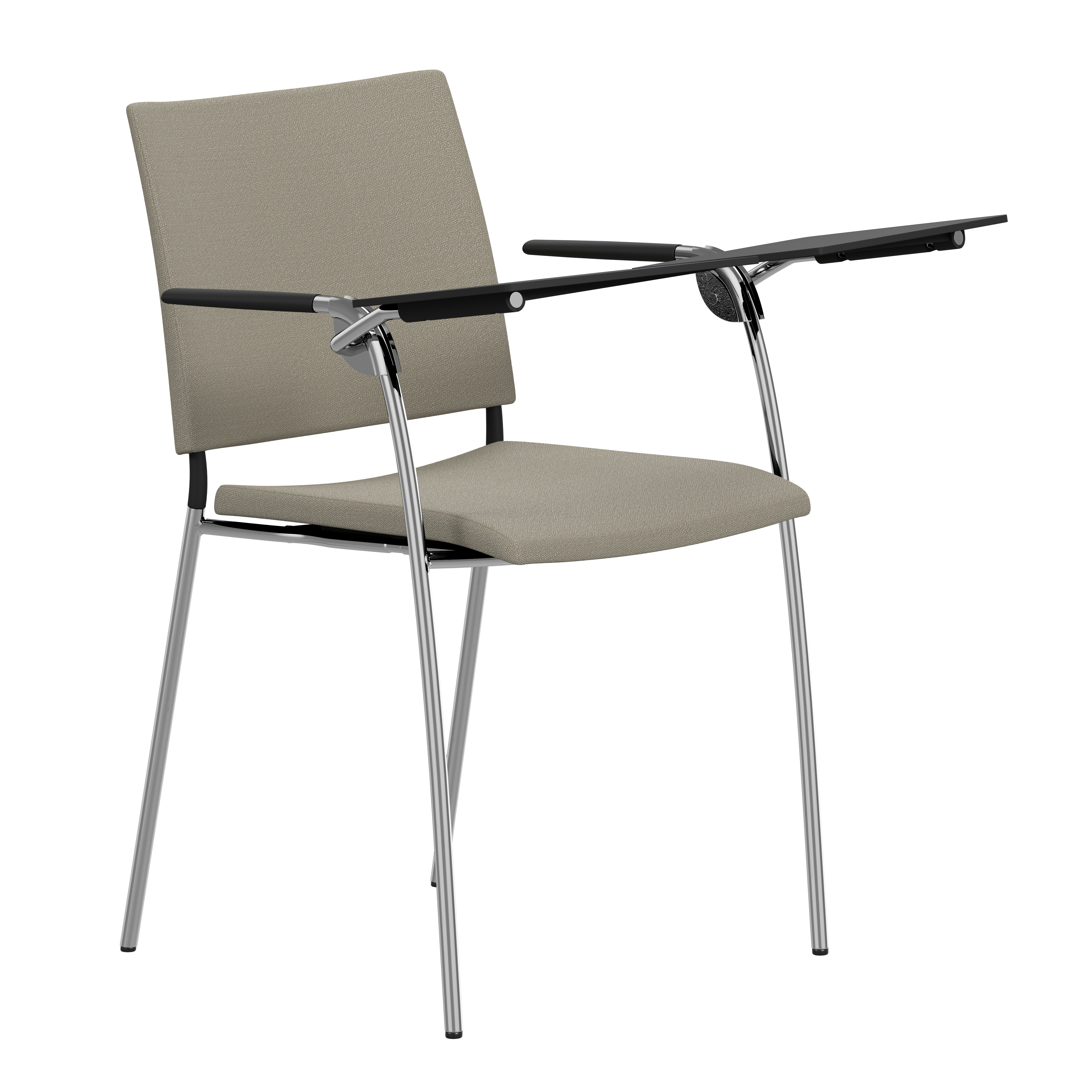 Upholstered seat with high resilient polyurethane foam incl. stacking protection or seat of cast polyurethane with upholstered back or black polyurethane on request. Spring steel in back. Armrests in dark or light woodfibre. Note! Armrest contains 40% woodfibre, therefore look may vary.