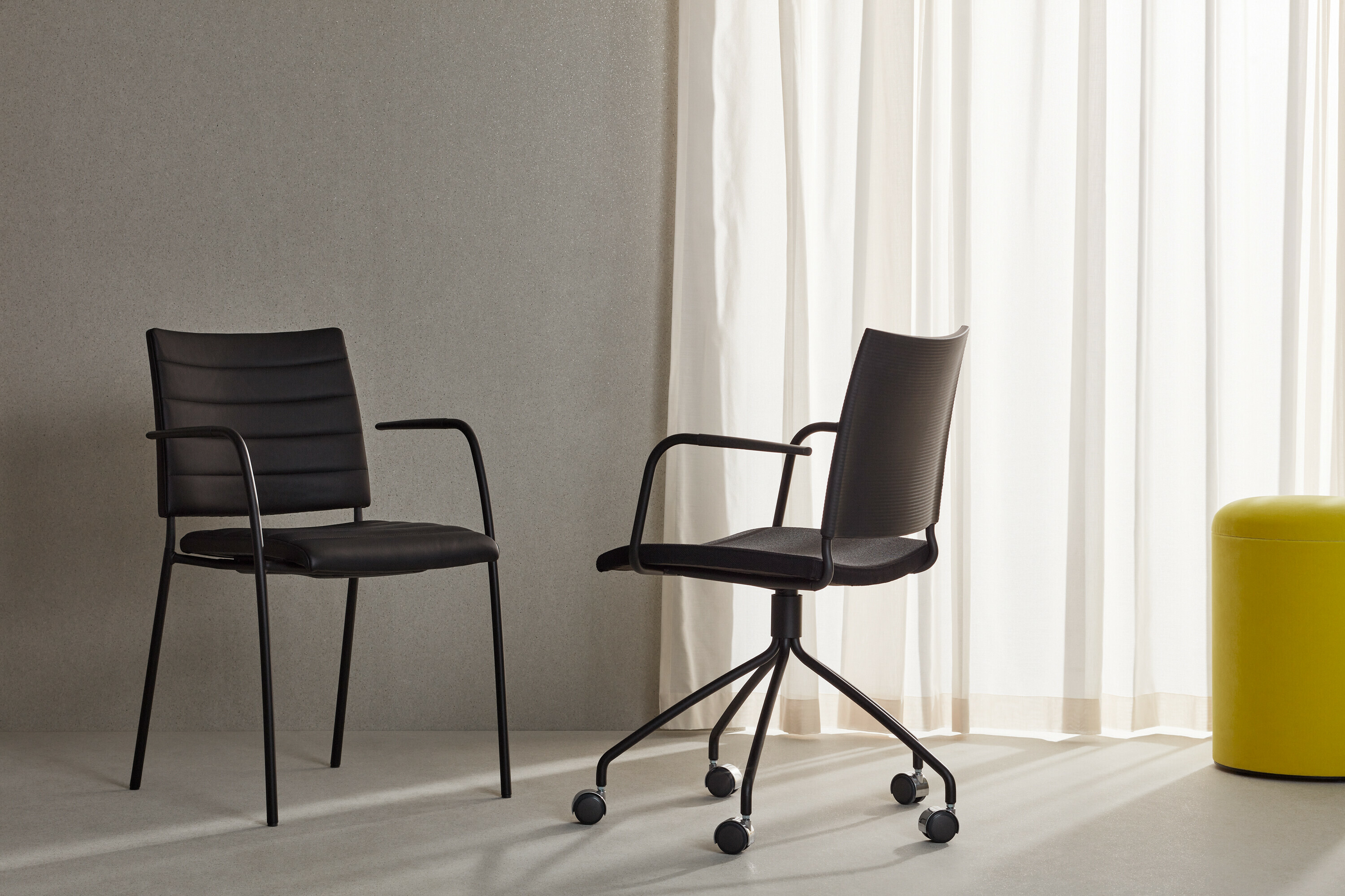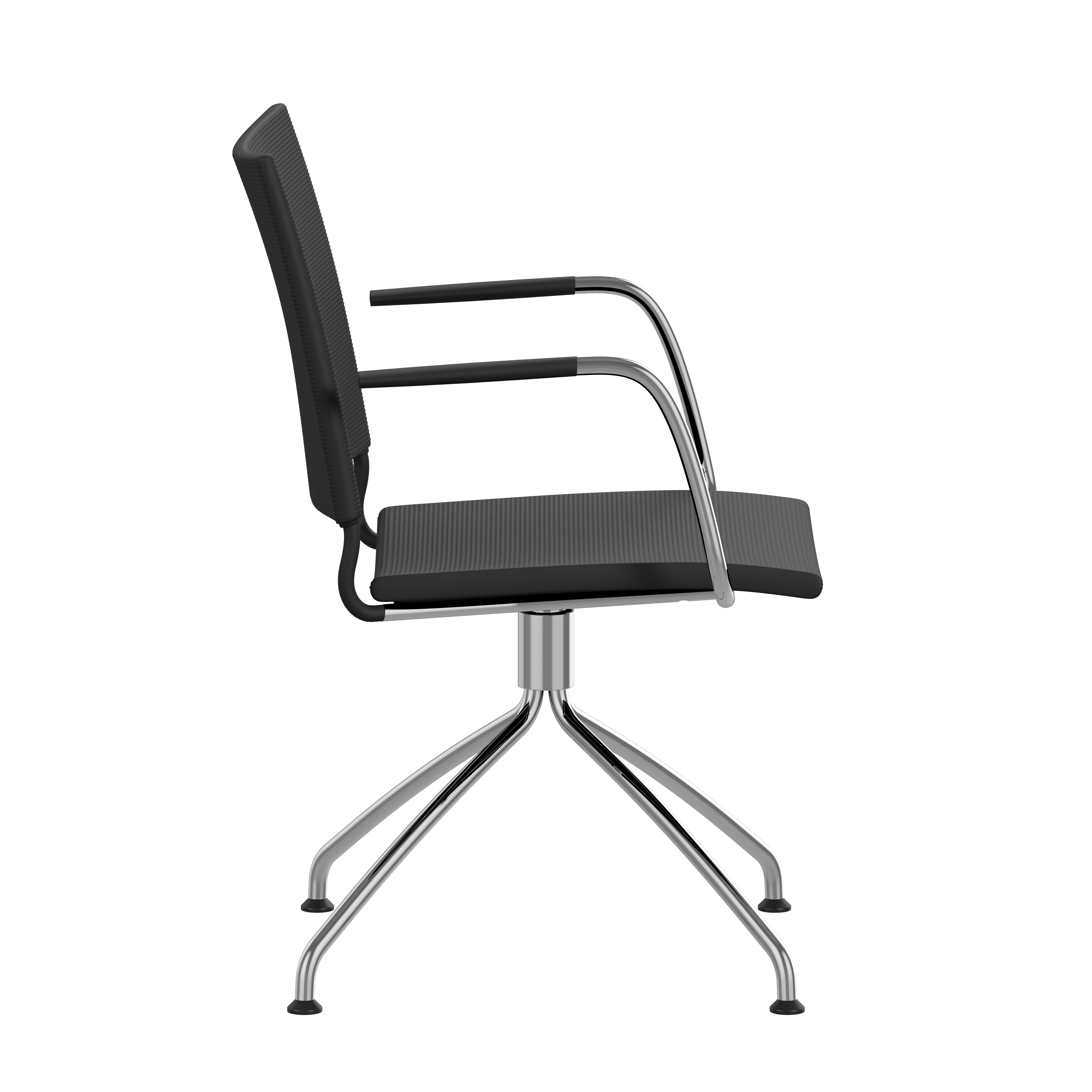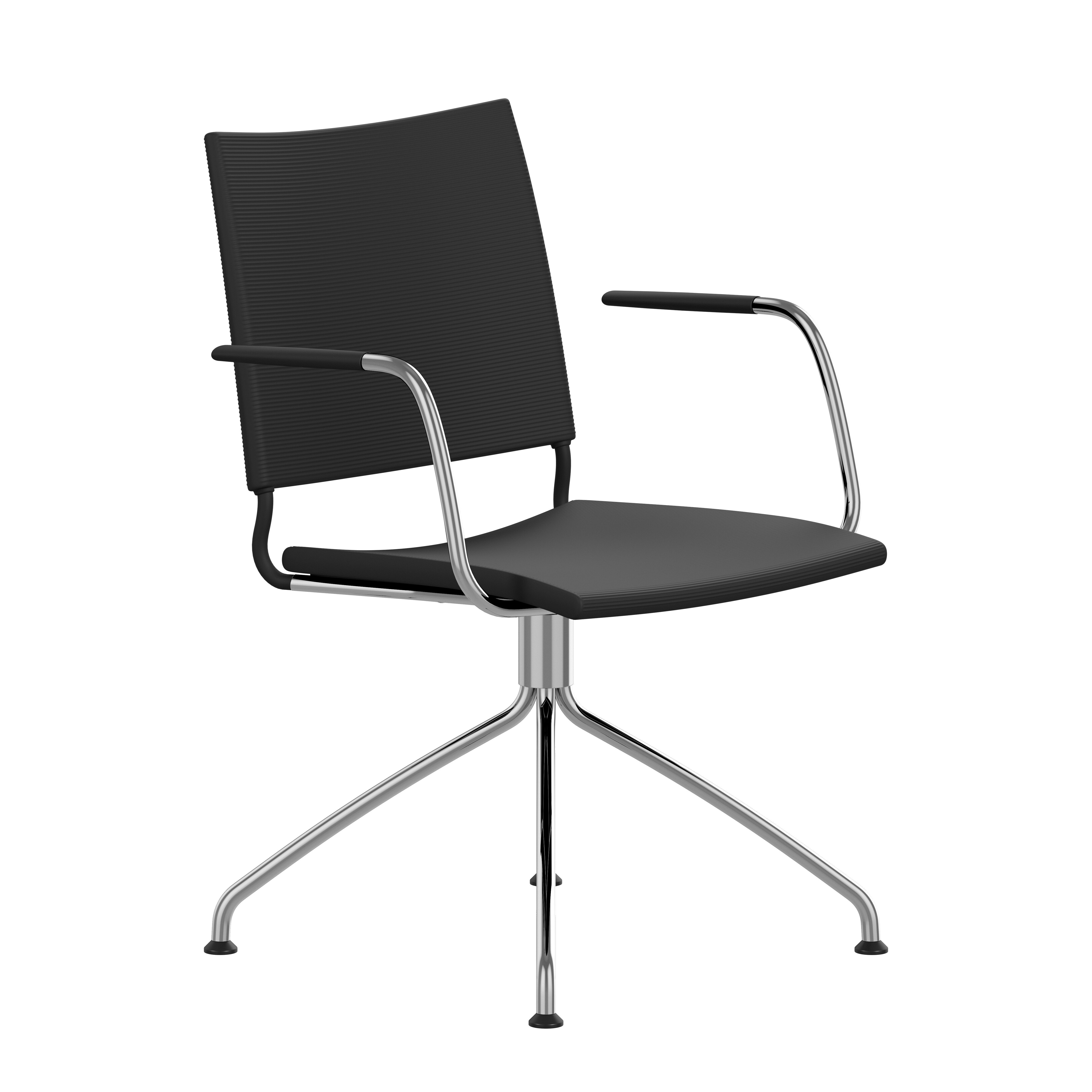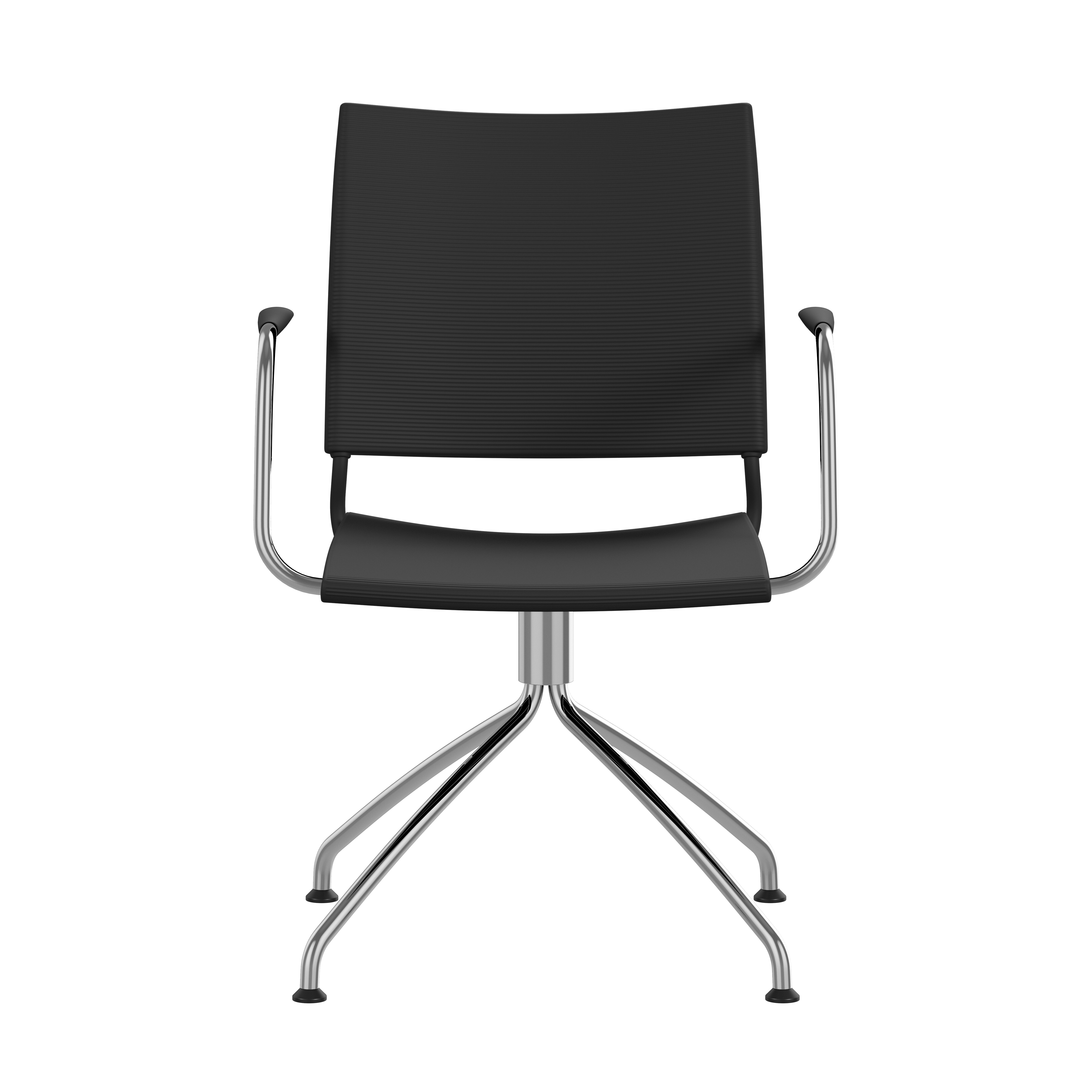 4-feet swivel base, 360°, of Ø18 mm powder coated or chromium plated steel tubing. Glides.