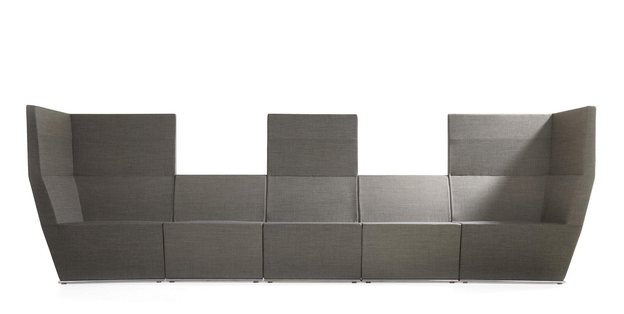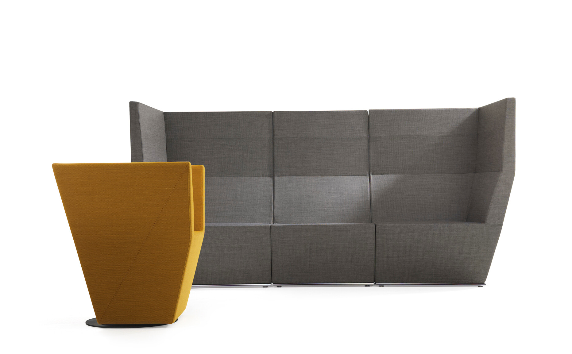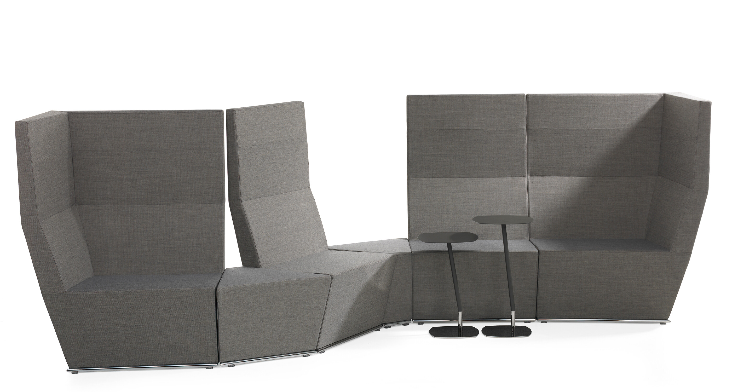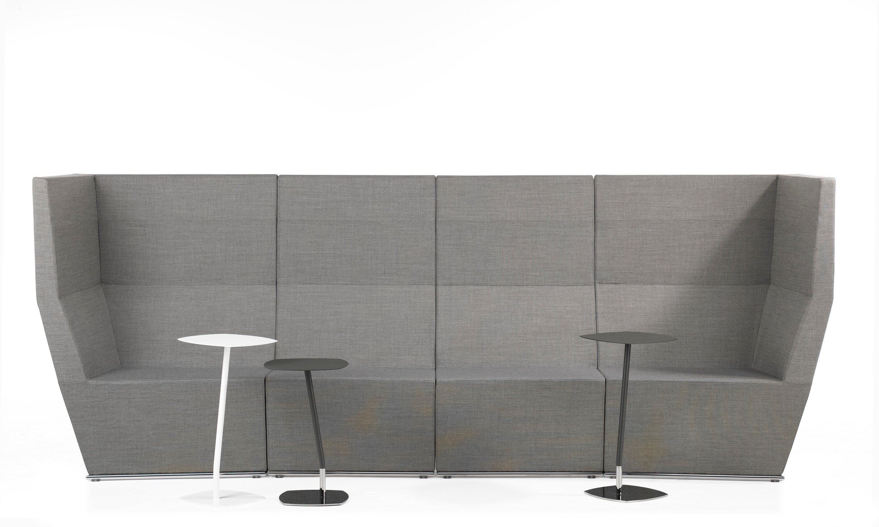This modular seating series with its six different modular units inspires to creative and flexible seating solutions. Use them separately or in groups to create exiting configurations. Two-, three- or even more seater sofas are easily created. The innovative linking device, Quicklink, consisting of built-in magnets makes the units easy to regroup. The airy table in perforated sheet metal makes a perfect complement to the upholstered units. The high back version offers a feeling of seclusion in open areas and enables building a soft, sophisticated room within the room.