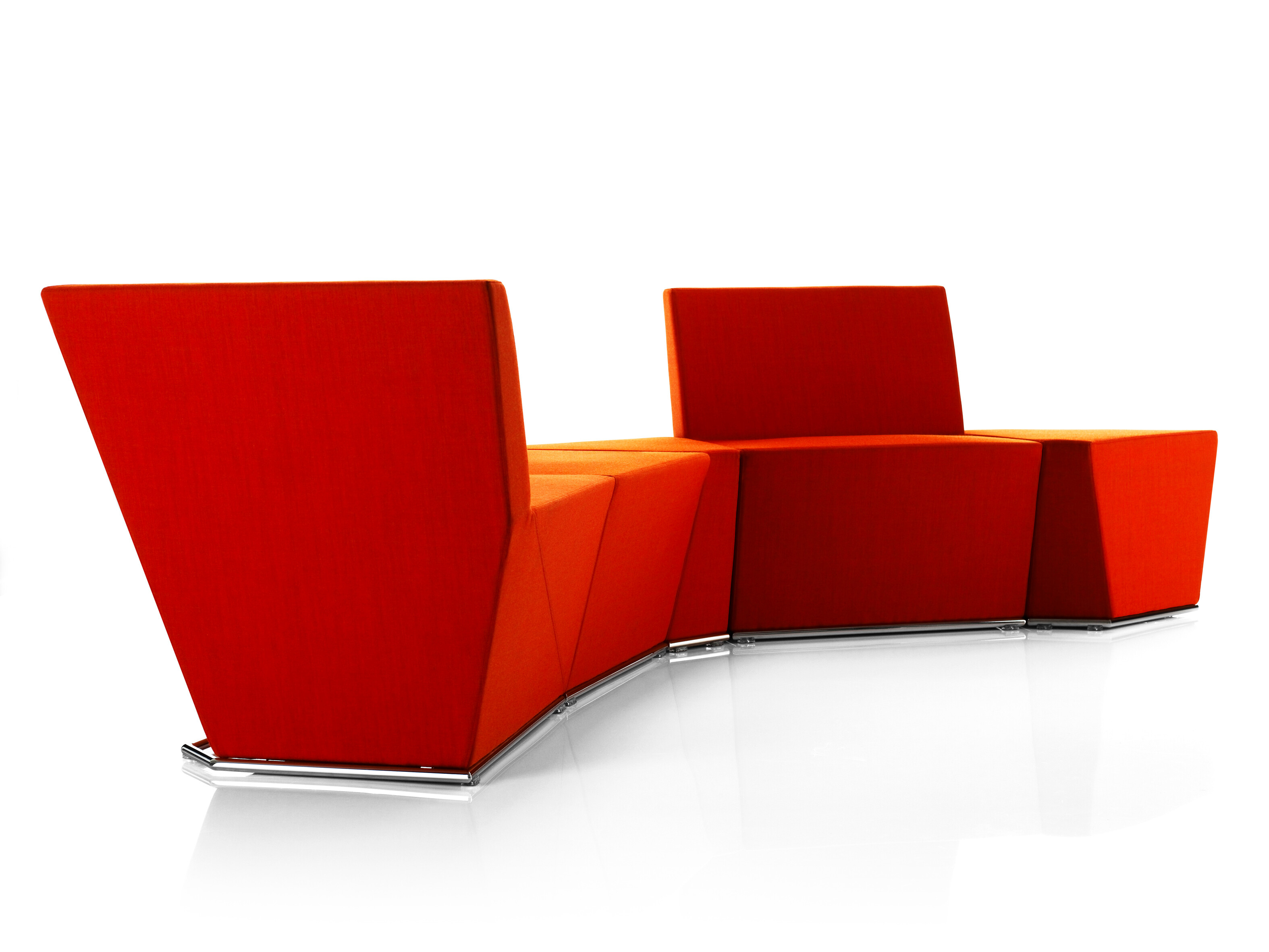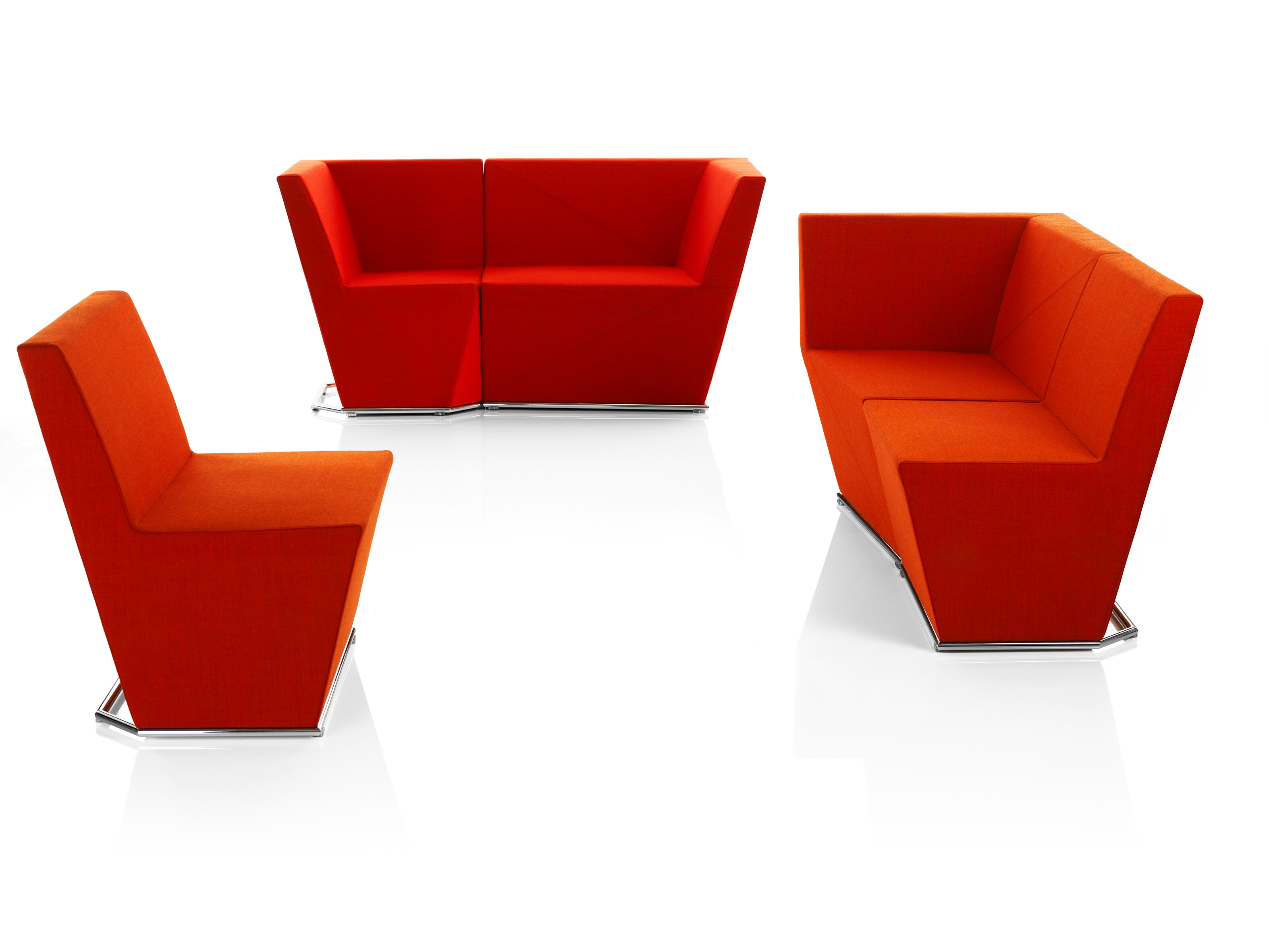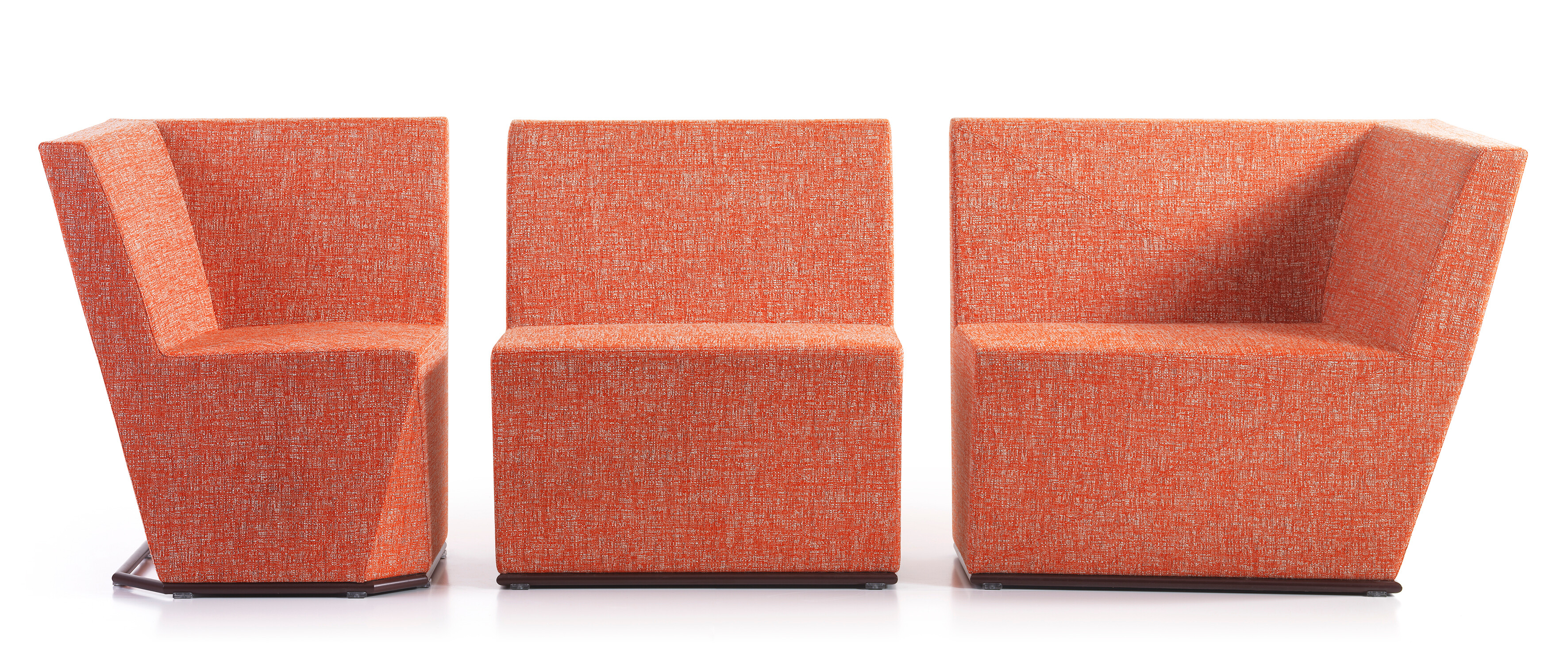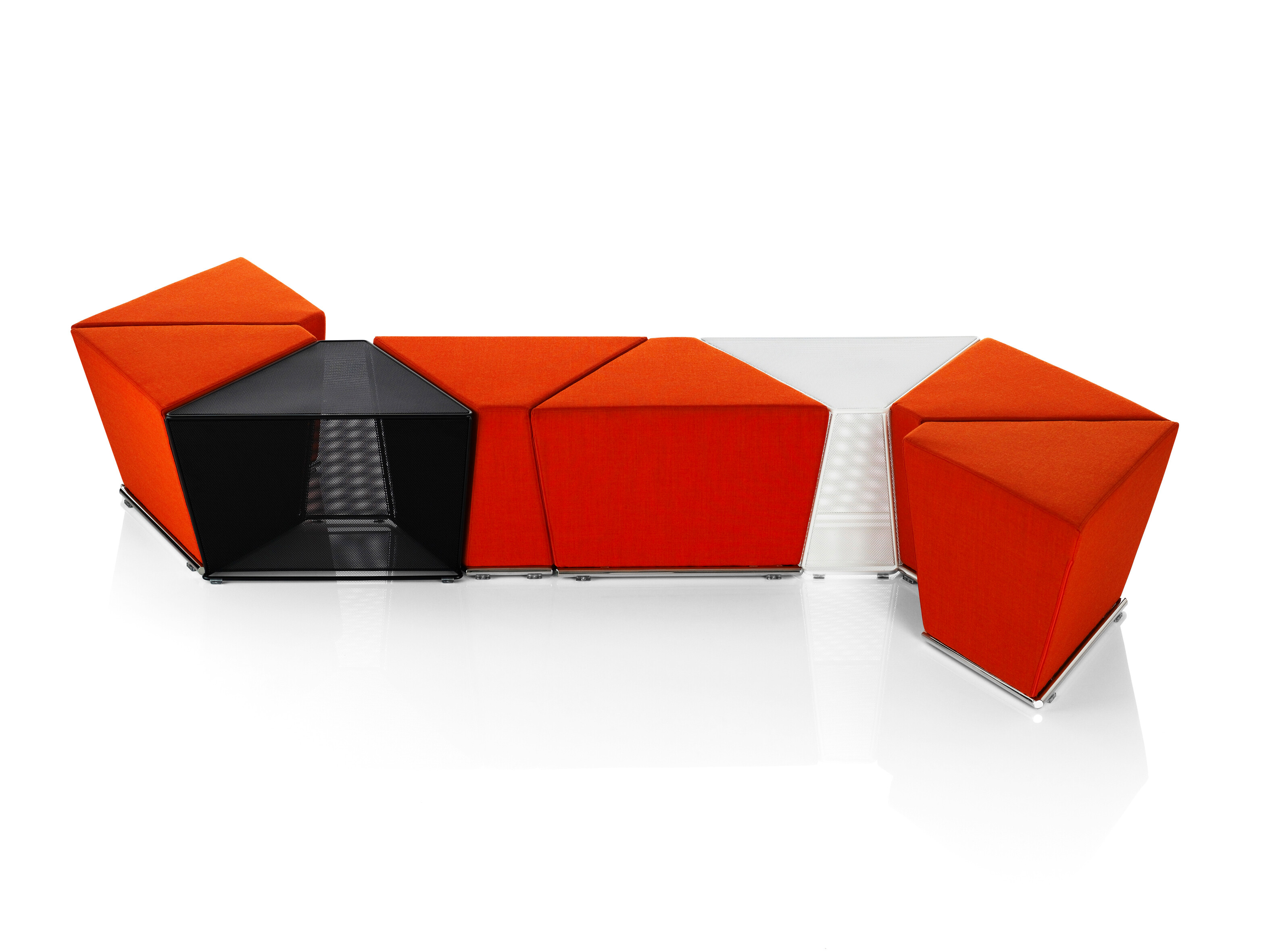 This modular seating series with its six different modular units inspires to creative and flexible seating solutions. Use them separately or in groups to create exiting configurations. Two-, three- or even more seater sofas are easily created. The innovative linking device, Quicklink, consisting of built-in magnets makes the units easy to regroup. The airy table in perforated sheet metal makes a perfect complement to the upholstered units. The high back version offers a feeling of seclusion in open areas and enables building a soft, sophisticated room within the room.