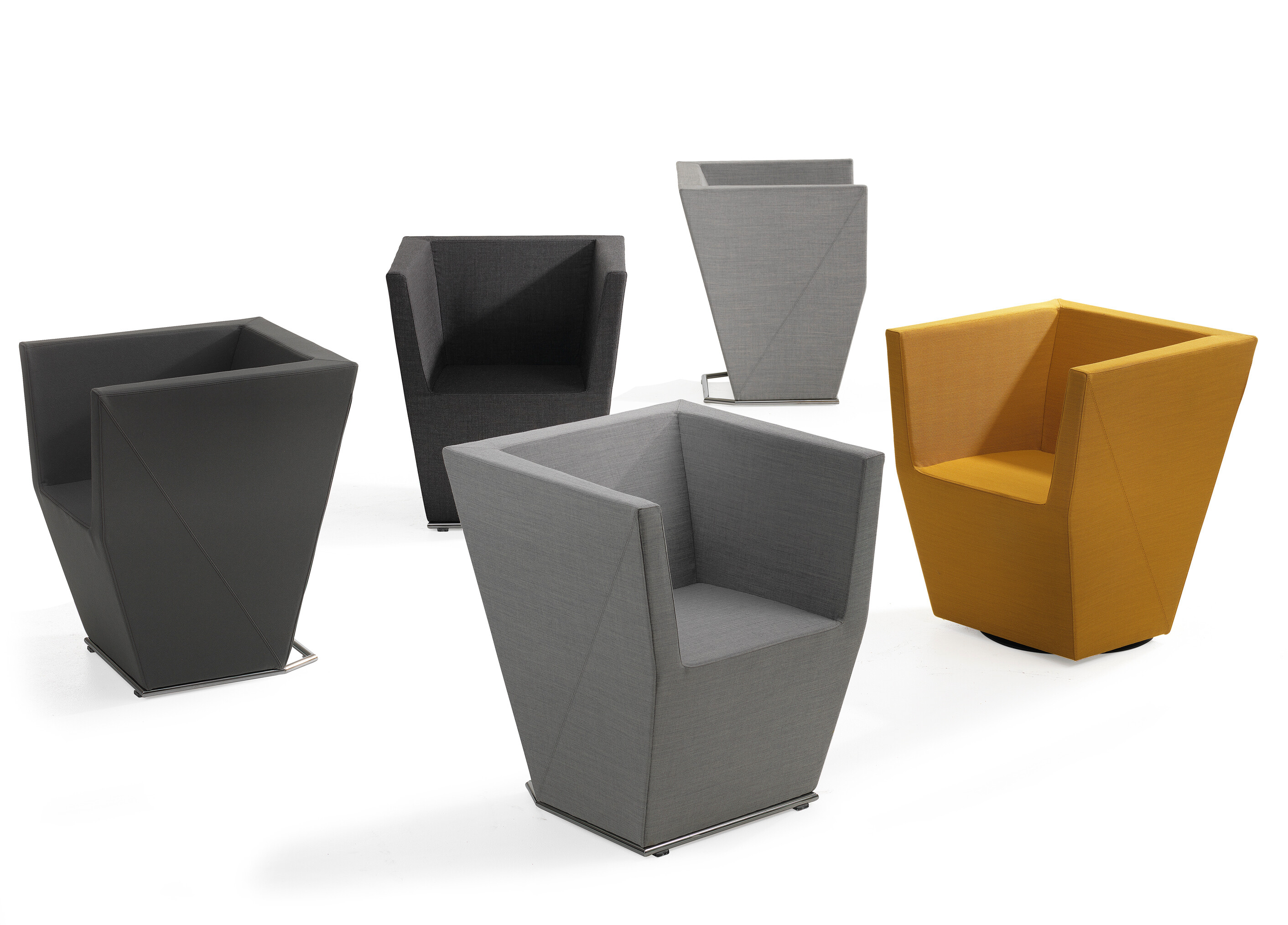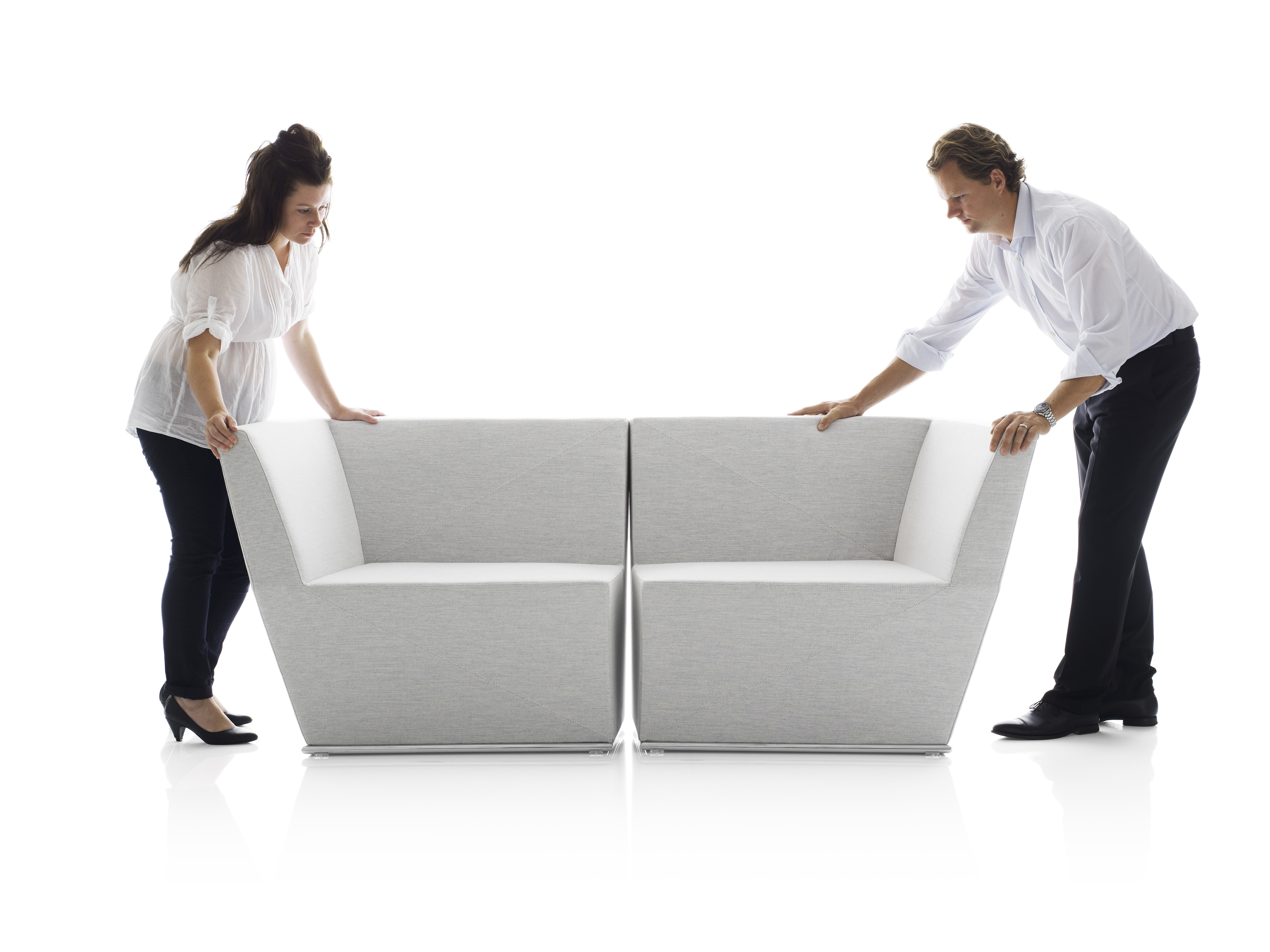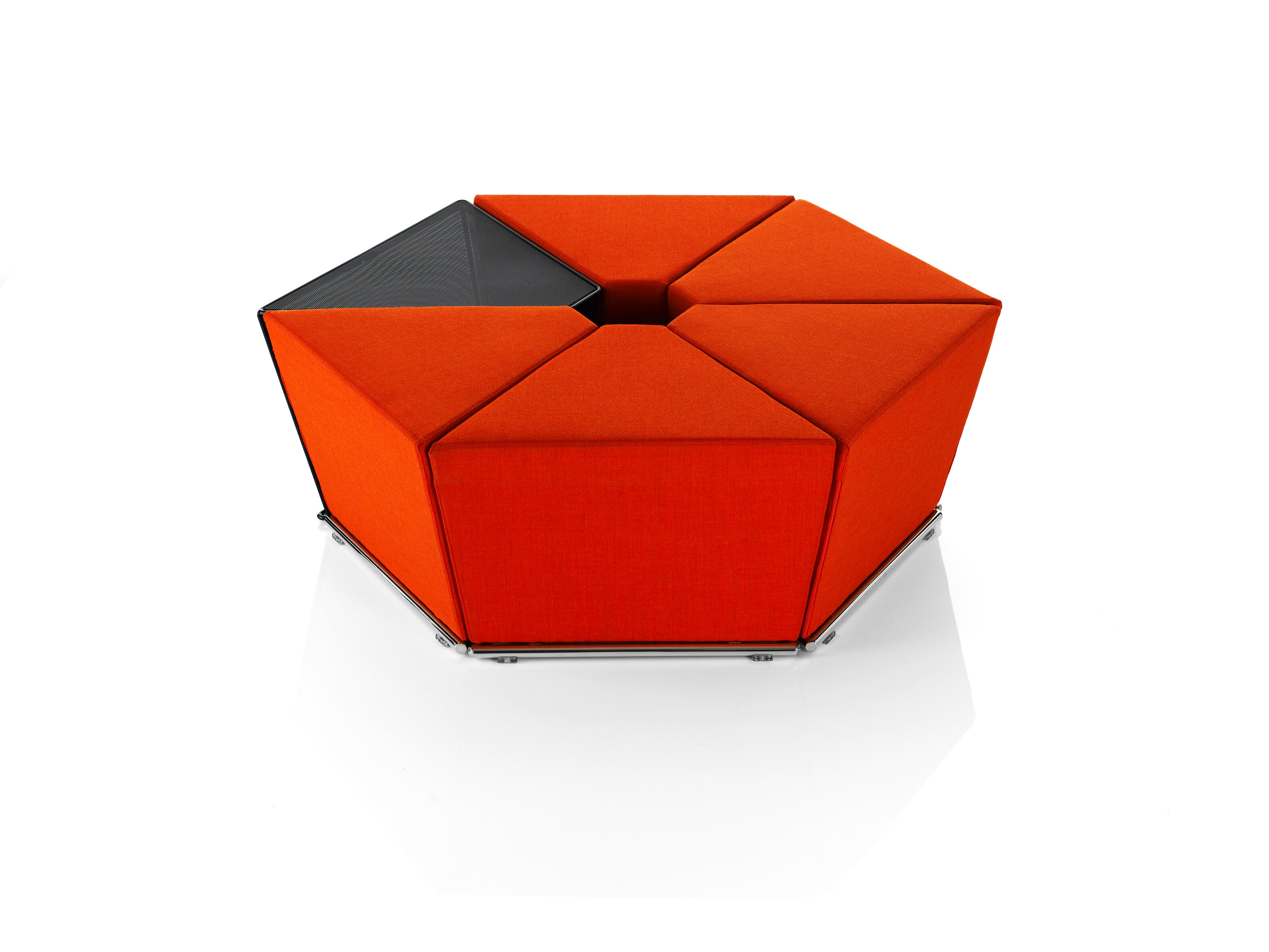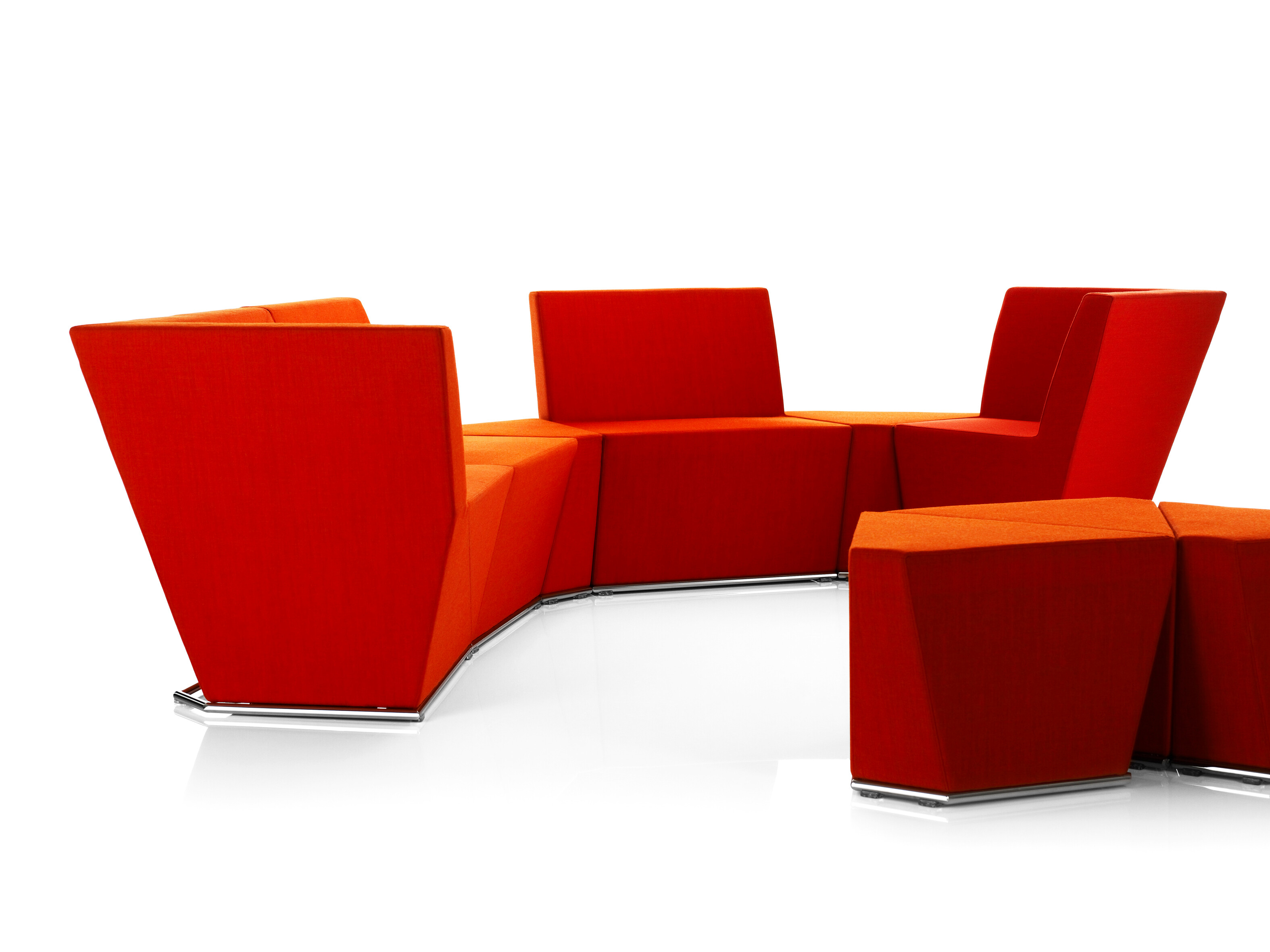 This modular seating series with its six different modular units inspires to creative and flexible seating solutions. Use them separately or in groups to create exiting configurations. Two-, three- or even more seater sofas are easily created. The innovative linking device, Quicklink, consisting of built-in magnets makes the units easy to regroup. The airy table in perforated sheet metal makes a perfect complement to the upholstered units. The high back version offers a feeling of seclusion in open areas and enables building a soft, sophisticated room within the room.