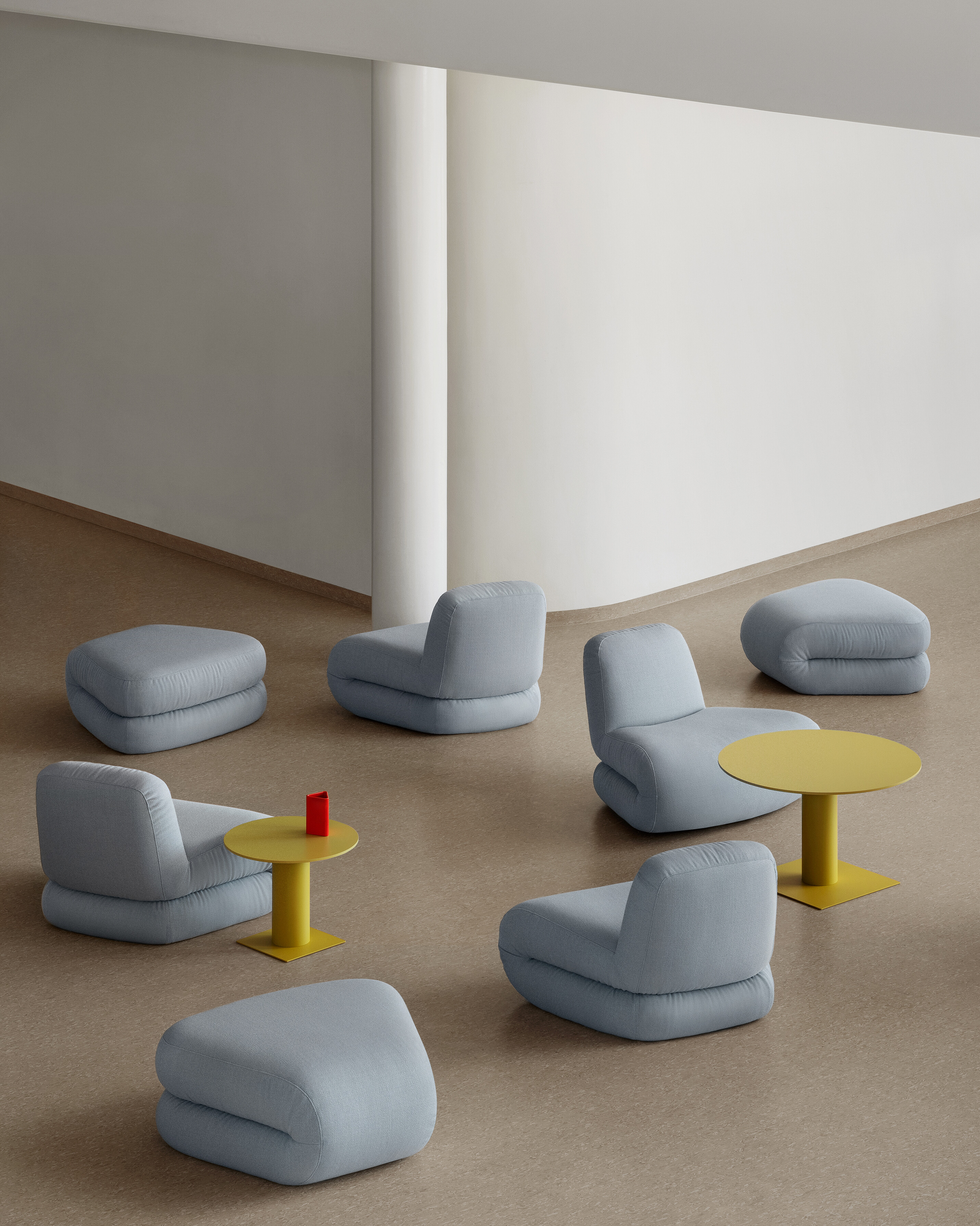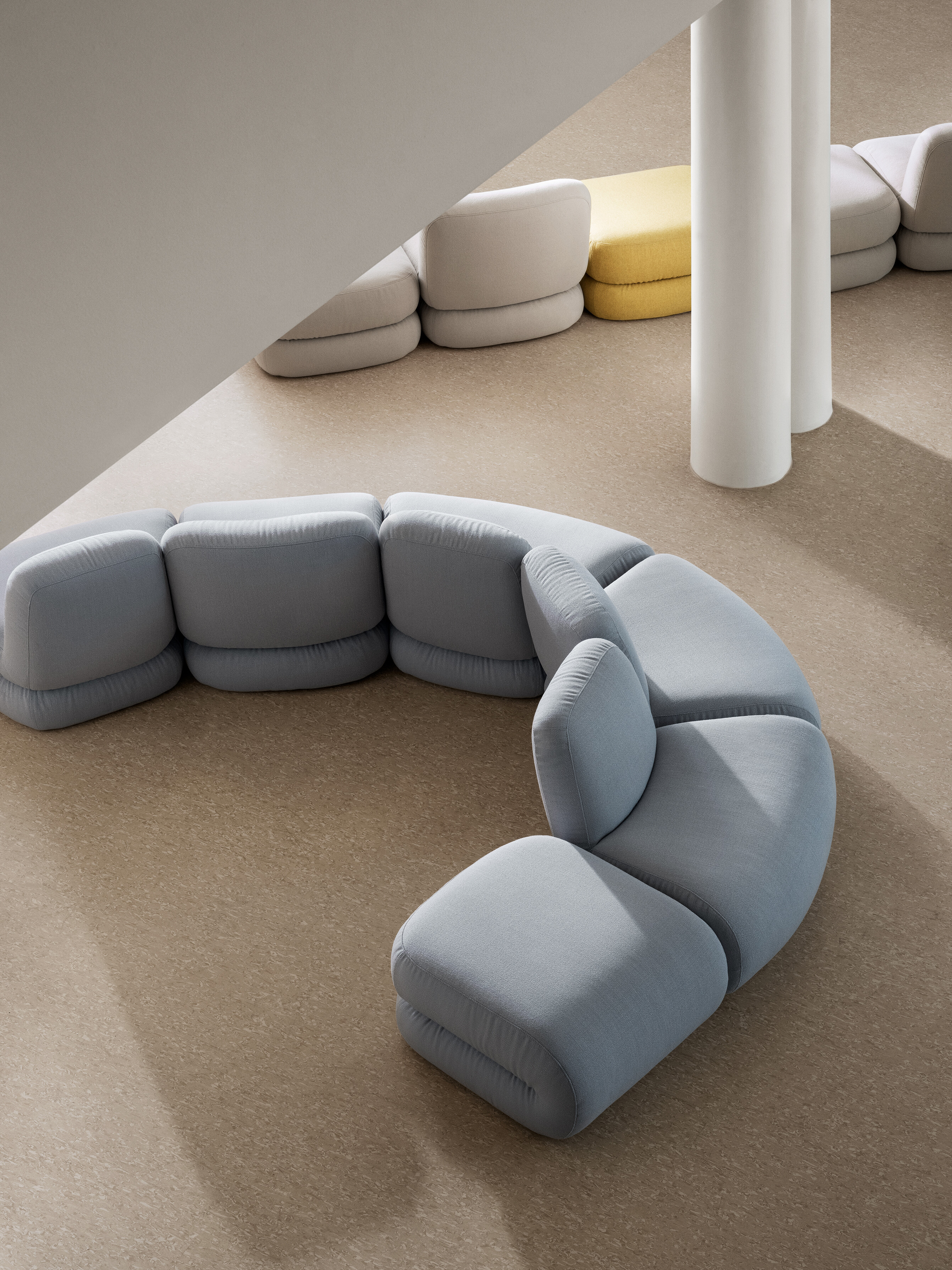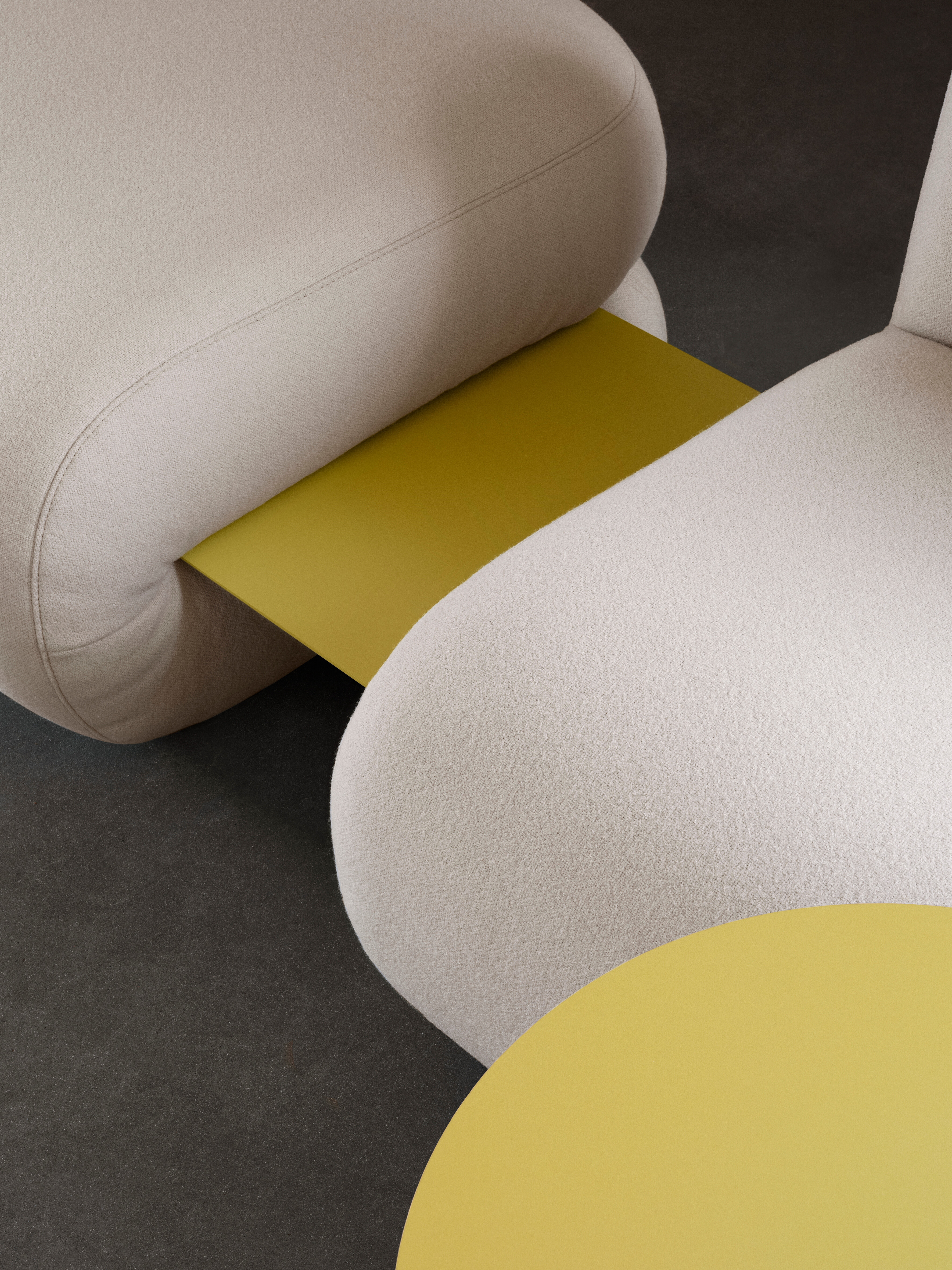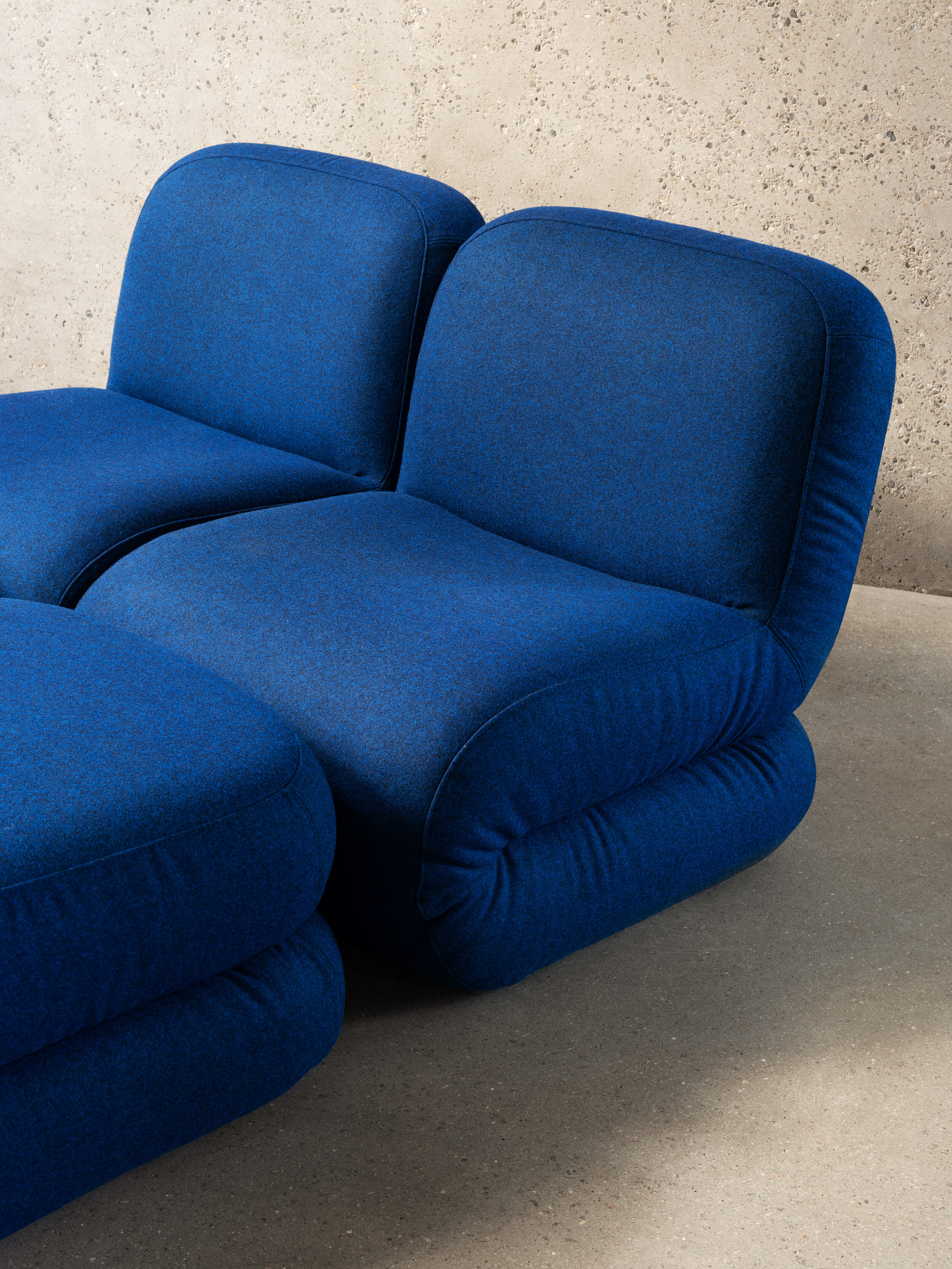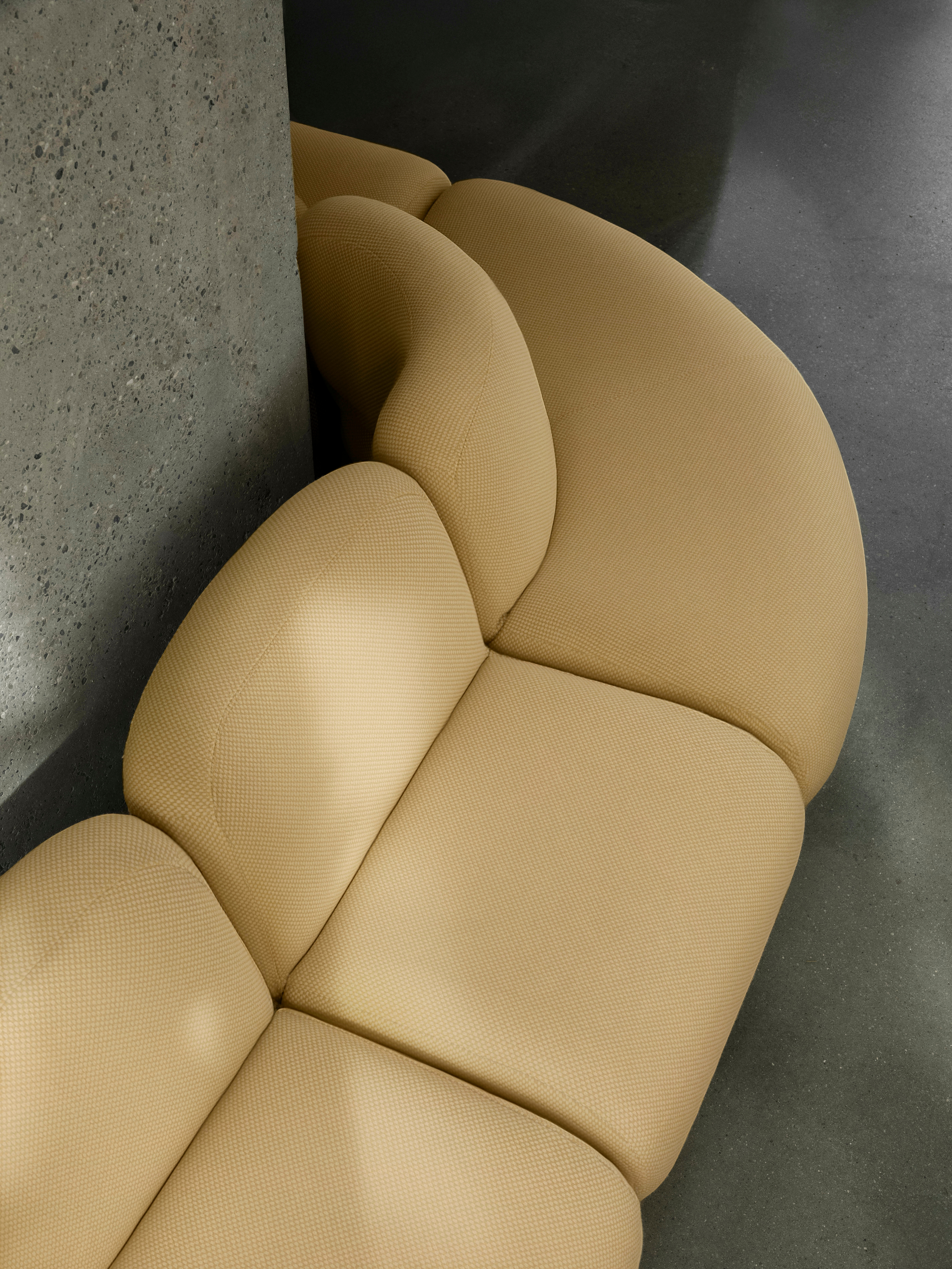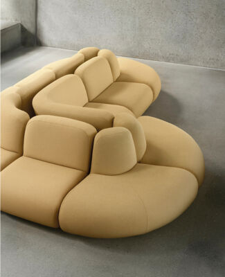 Bau is a modular seating series that ignores conventional ideas of right and wrong. It can be employed as a solitary easy chair or combined to create a playful variety of seating configurations. The collection includes a linking table, whose geometrical edginess contrasts with the sofa’s laid-back personality.