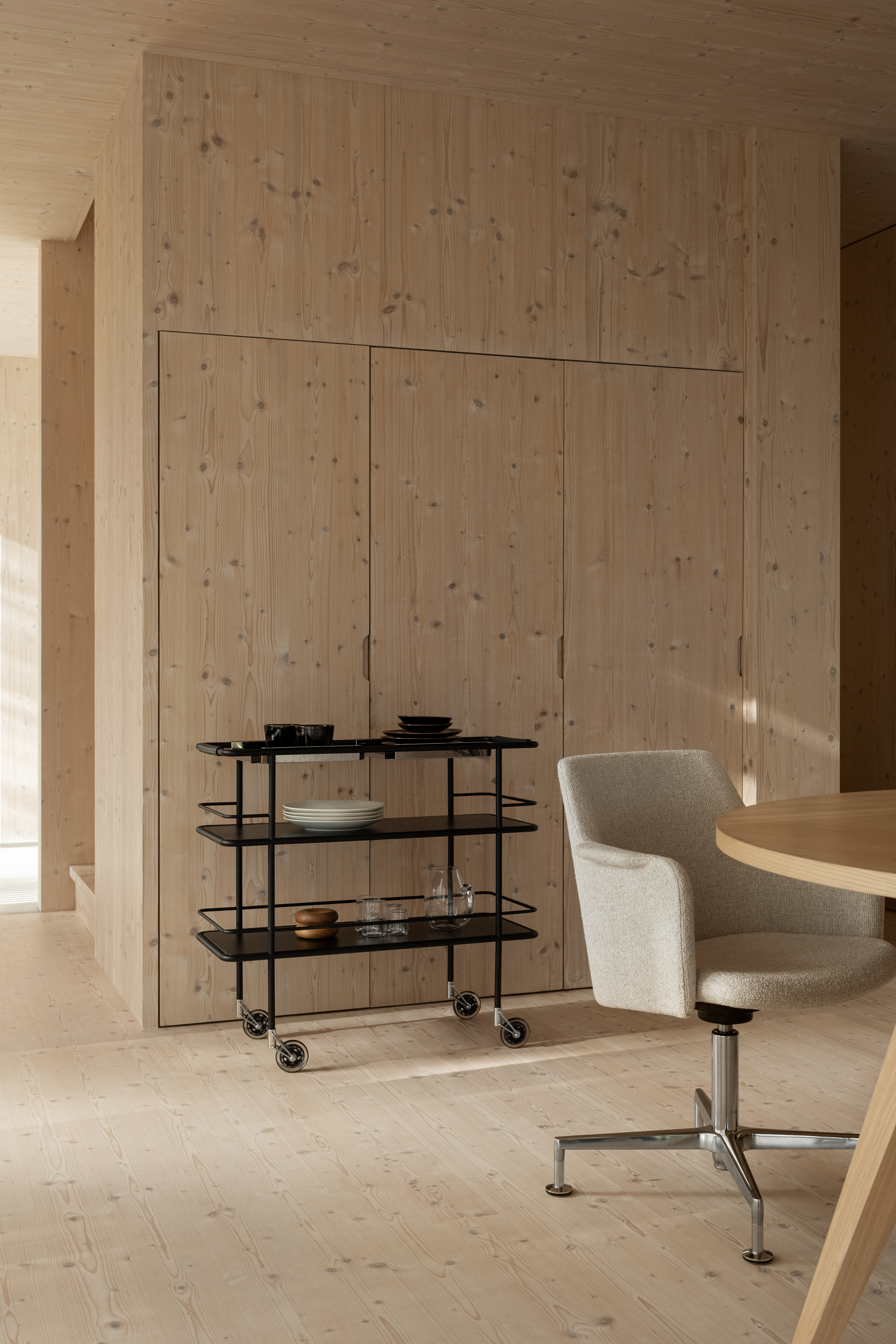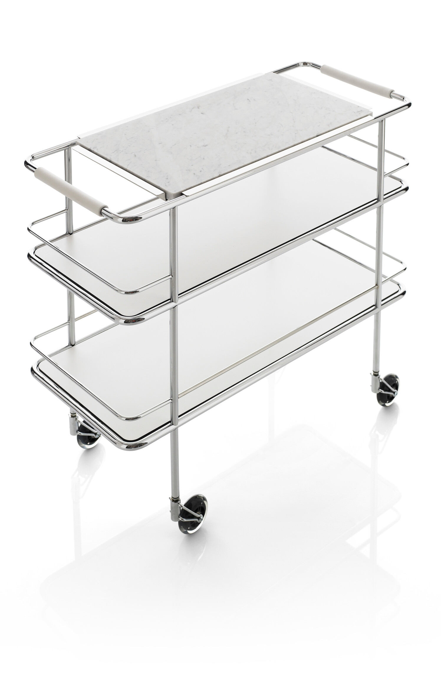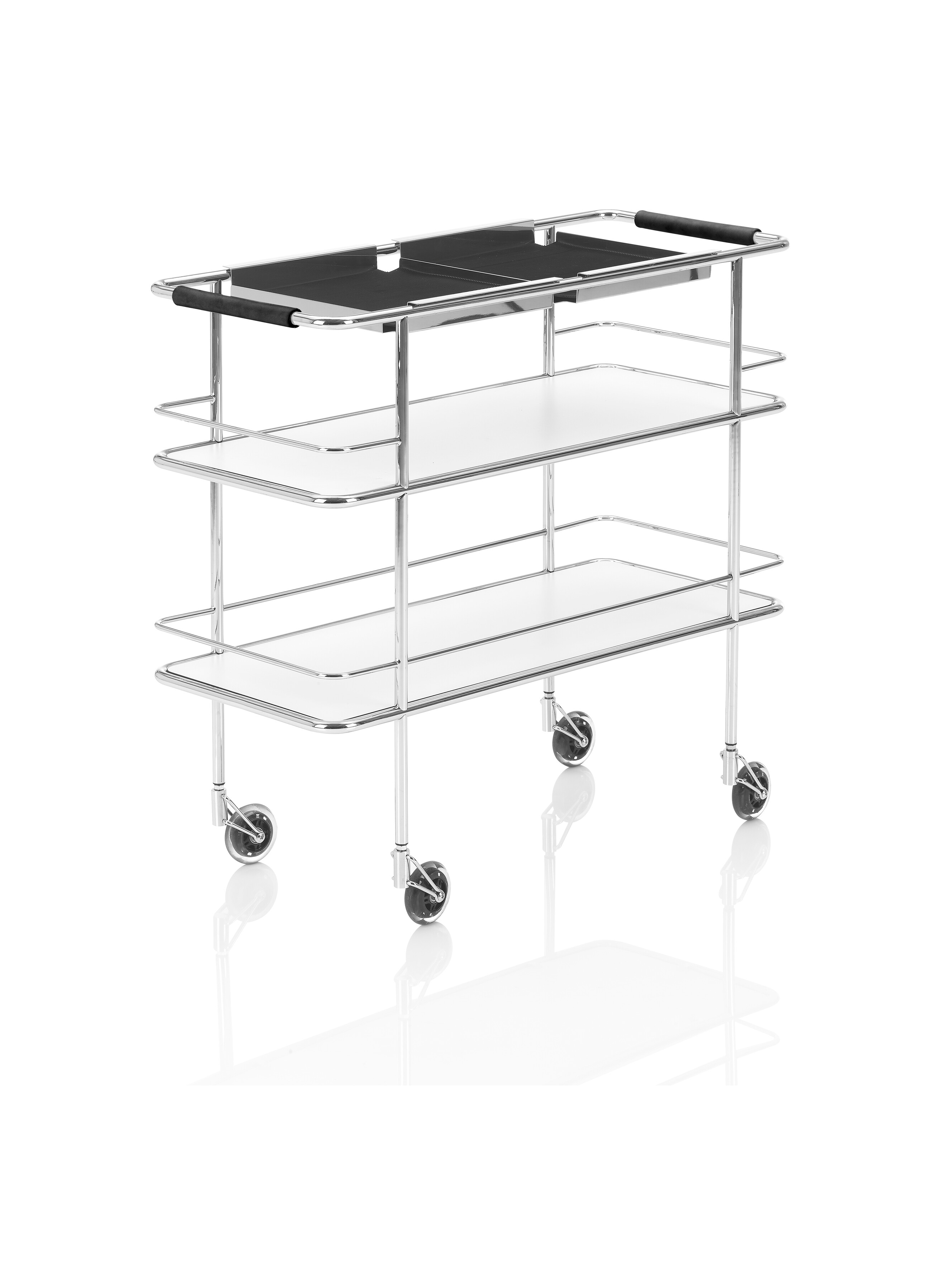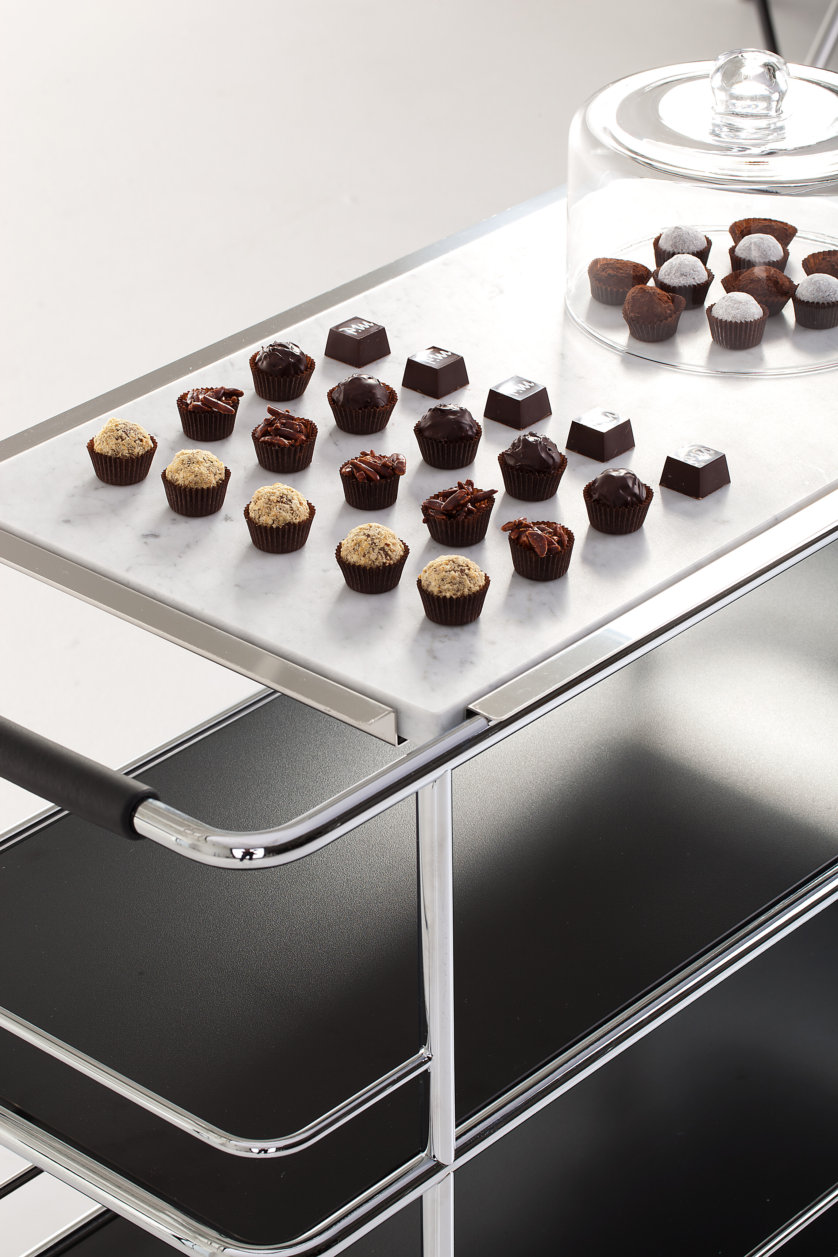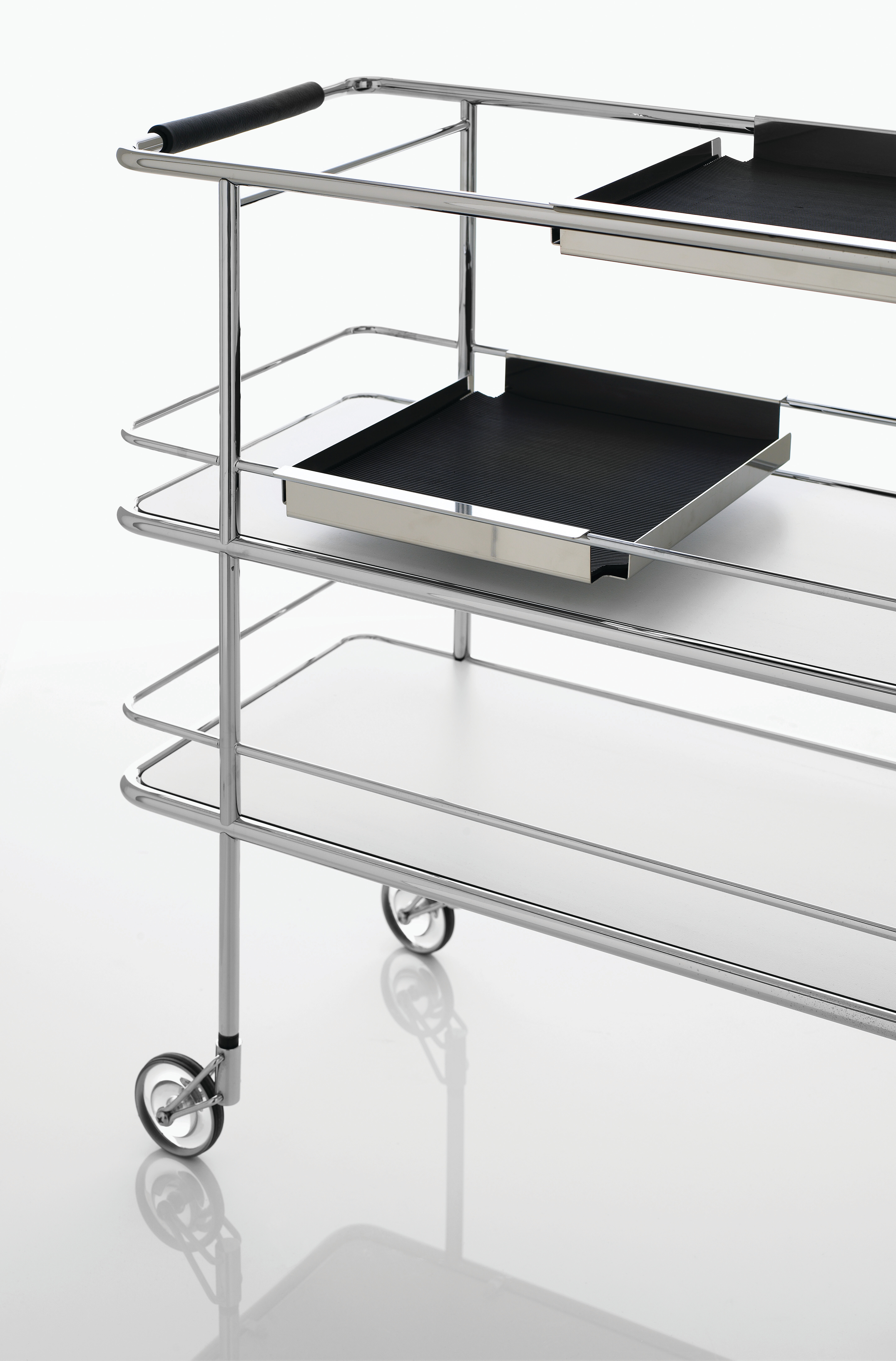 The Cargo trolley collection brings utility and grace together, whether as a sideboard in the home or in office, or as a bar or serving trolley around the dining areas of the finest restaurants.